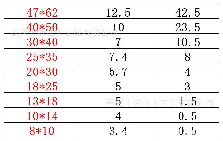 | 47 * 62mm conventional | CN¥ 1.04 |