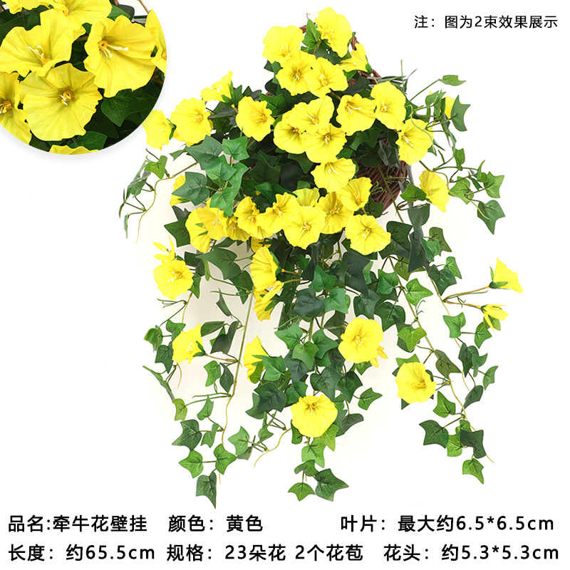 18 flowers raw silk petunia hanging-yellow