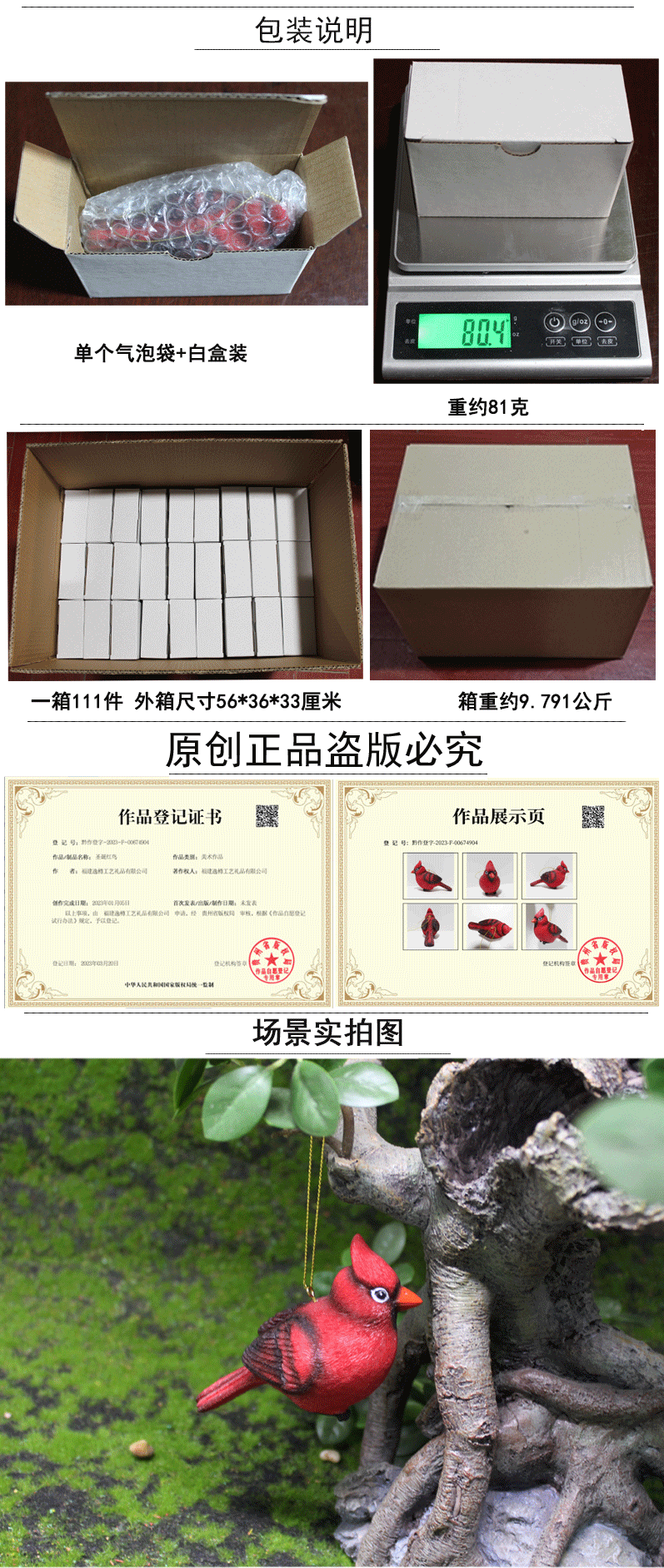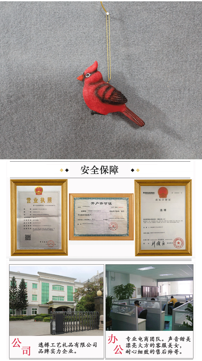 three-dimensional christmas red bird hanging pieces