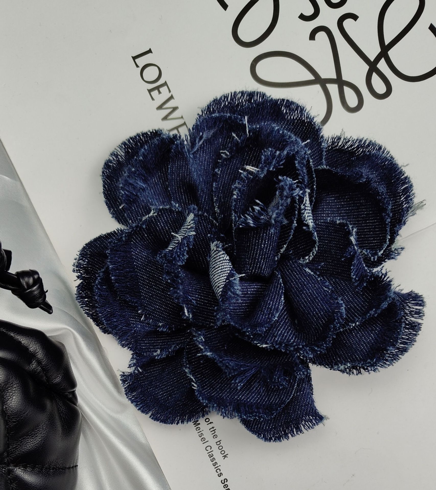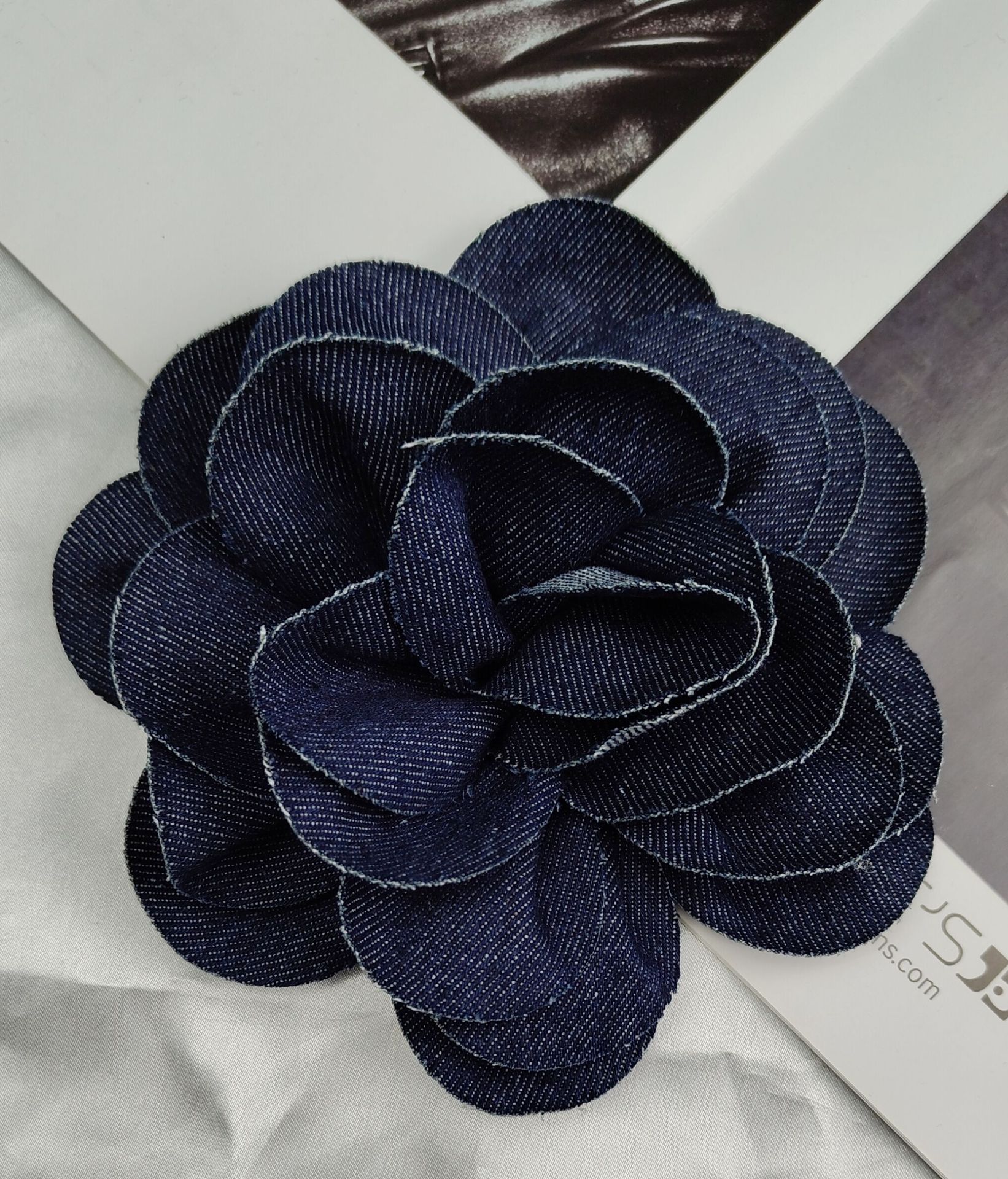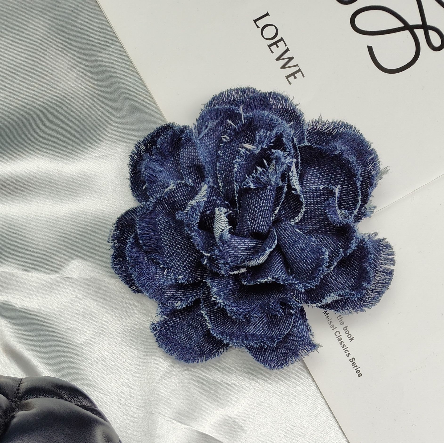 denim flower curl (dark blue)