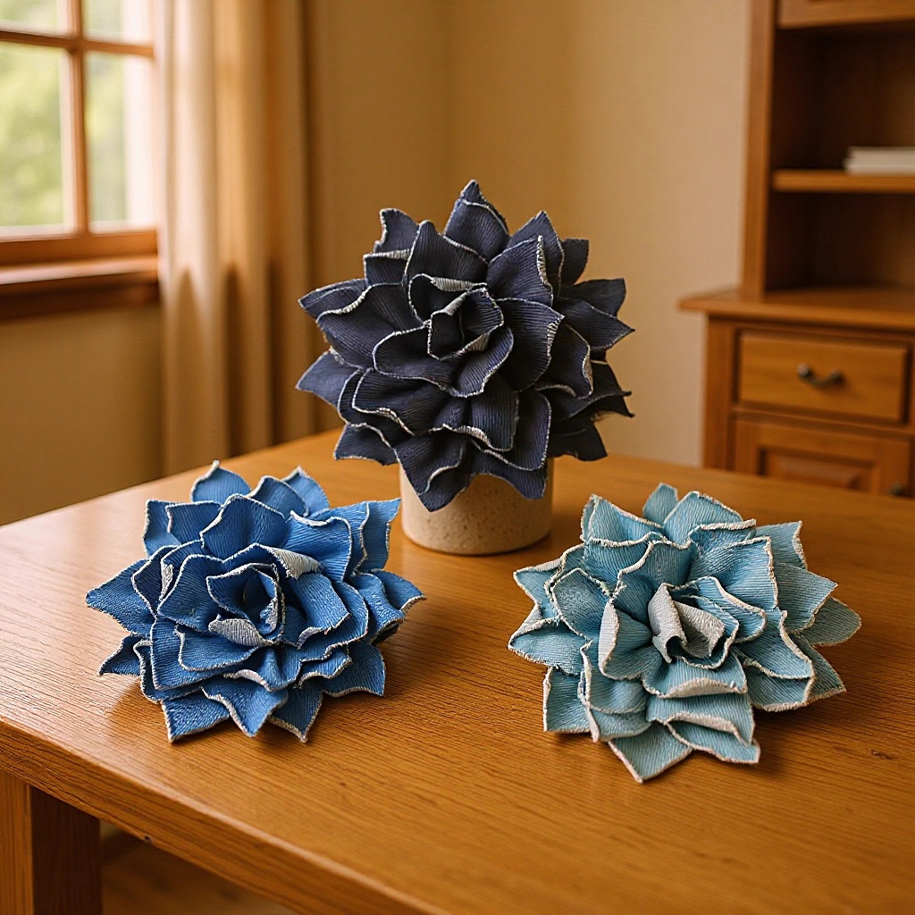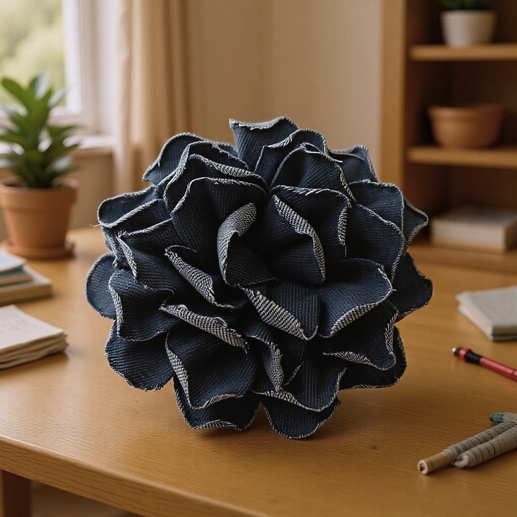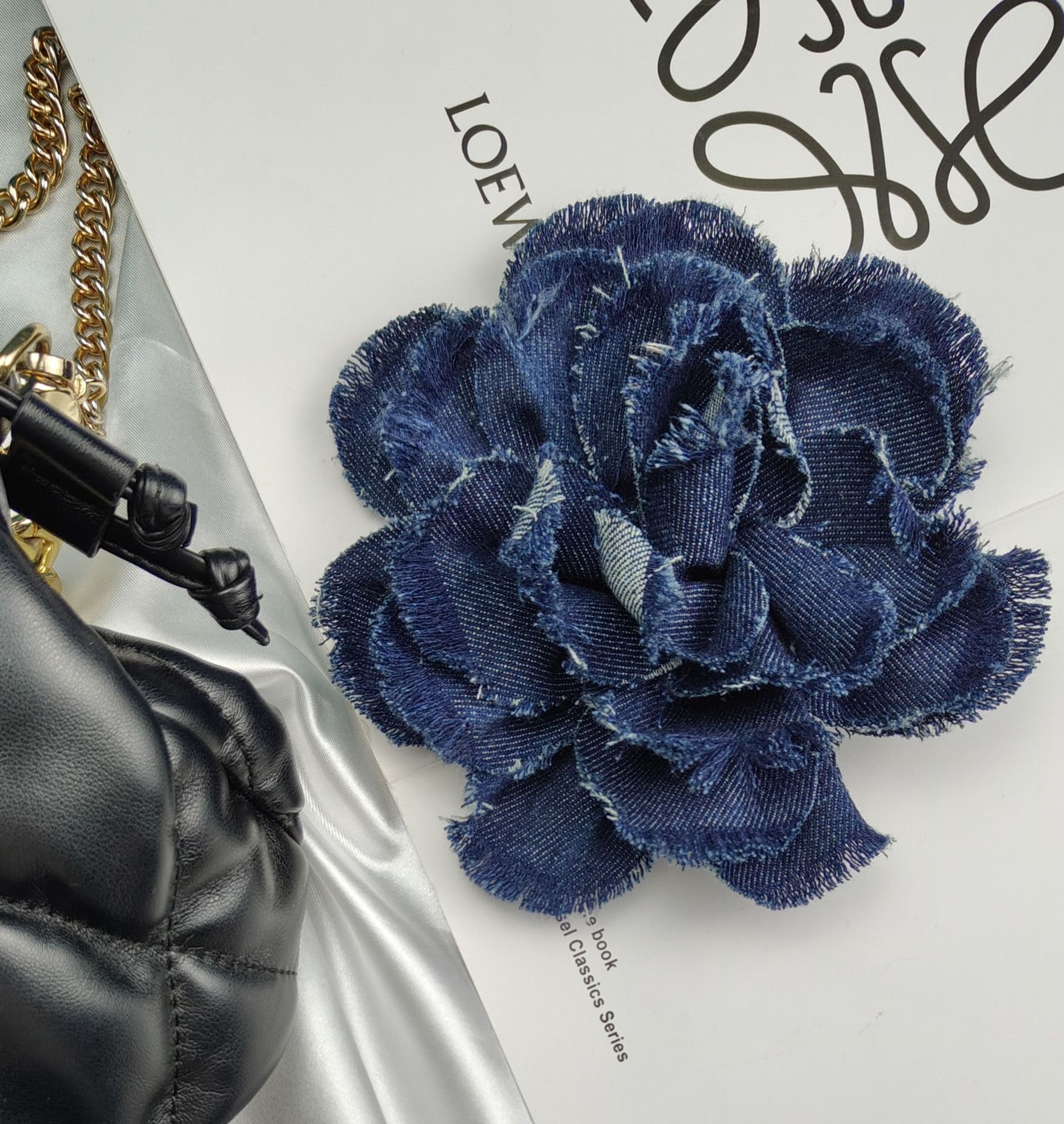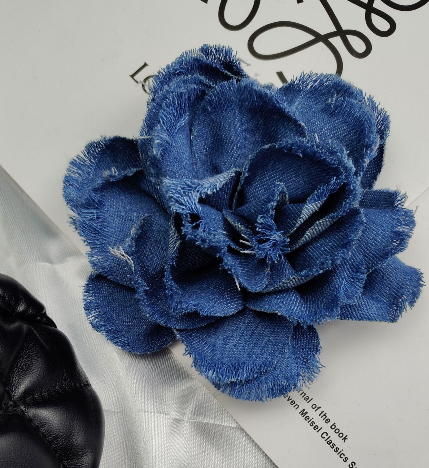 denim flower curl (dark blue)