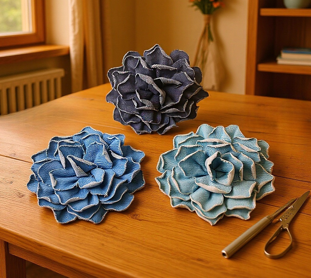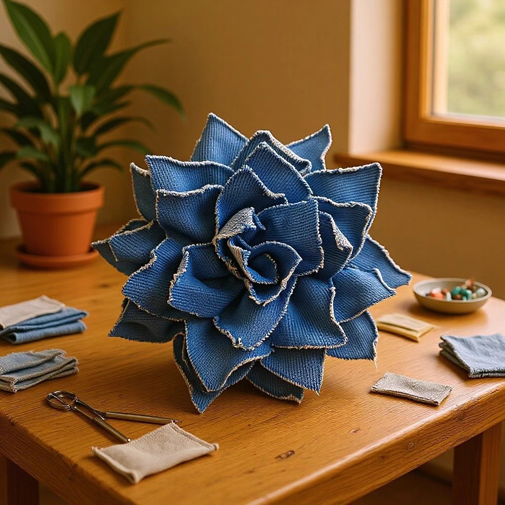 denim flower curl (denim blue)