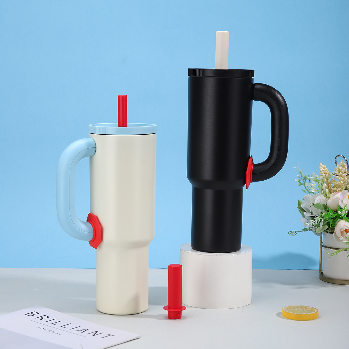 new 304 stainless steel thermos cup good-looking dopamine handle large ice cup portable vehicle-mounted outdoor cup