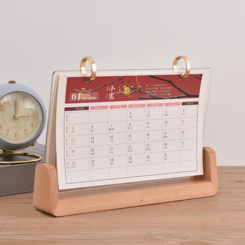 vertical plastic ring black peach wood color desk calendar type a