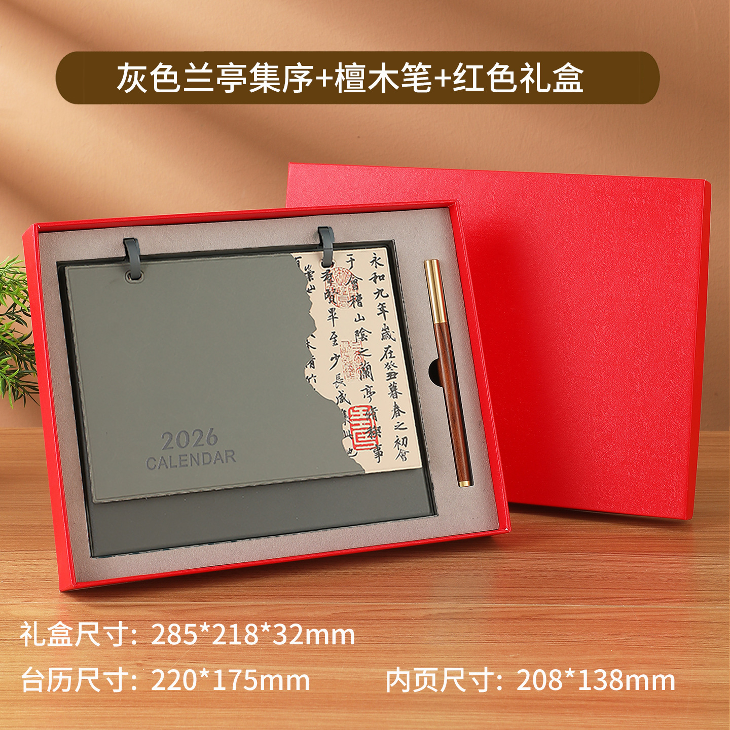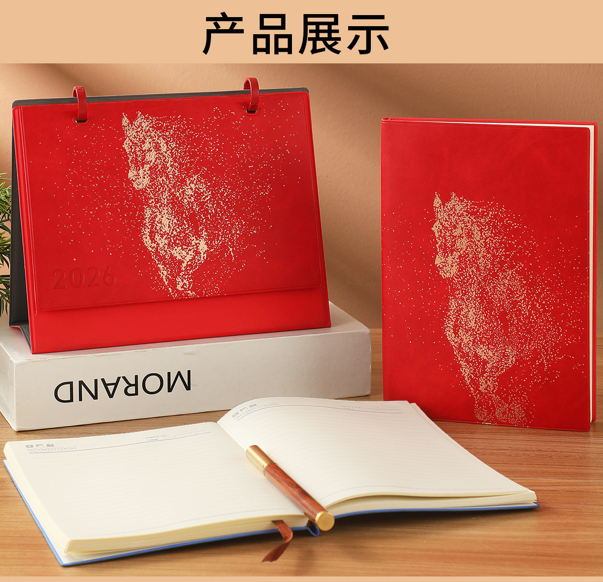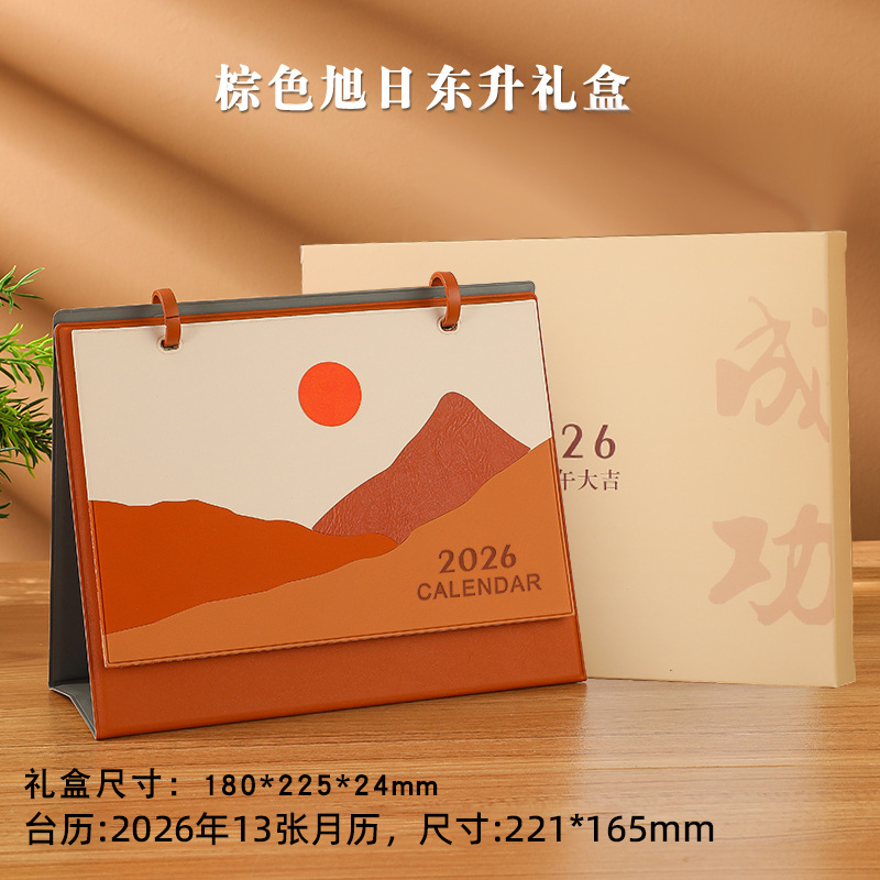 brown rising sun + notebook + red gift box