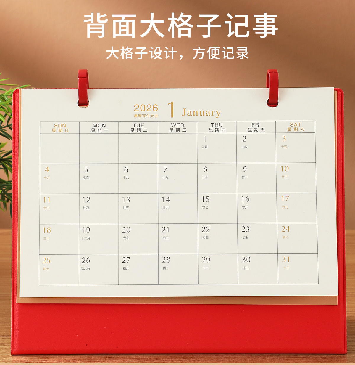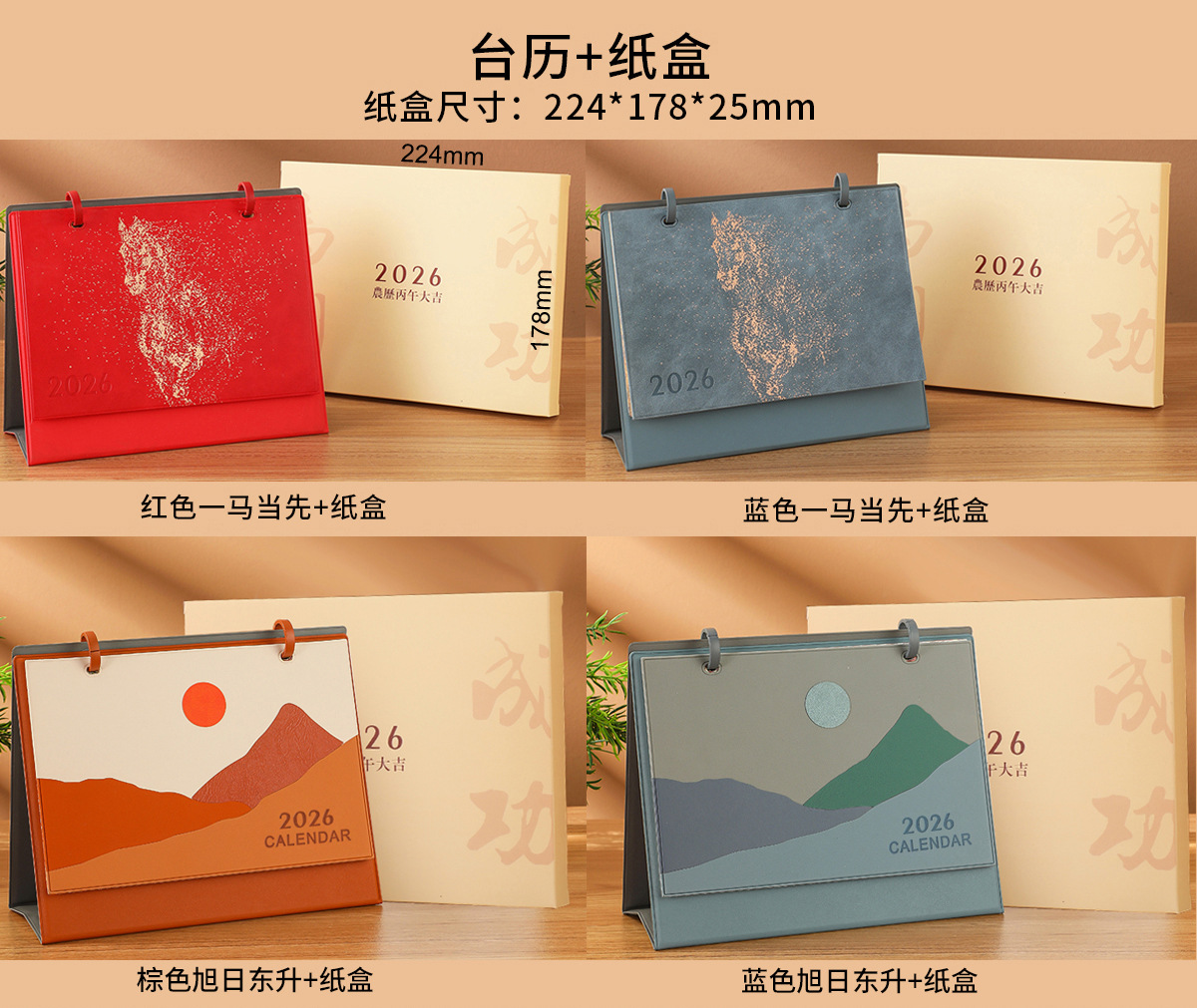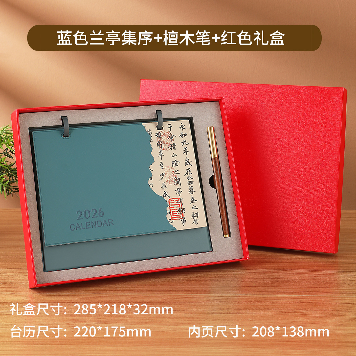 brown rising sun + notebook + red gift box