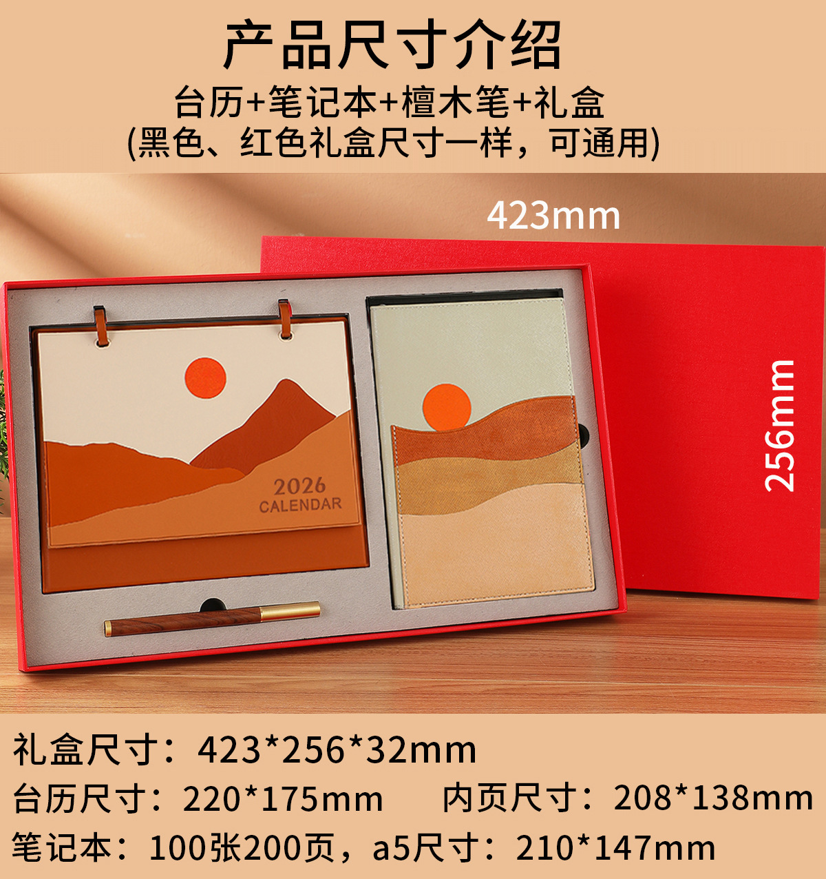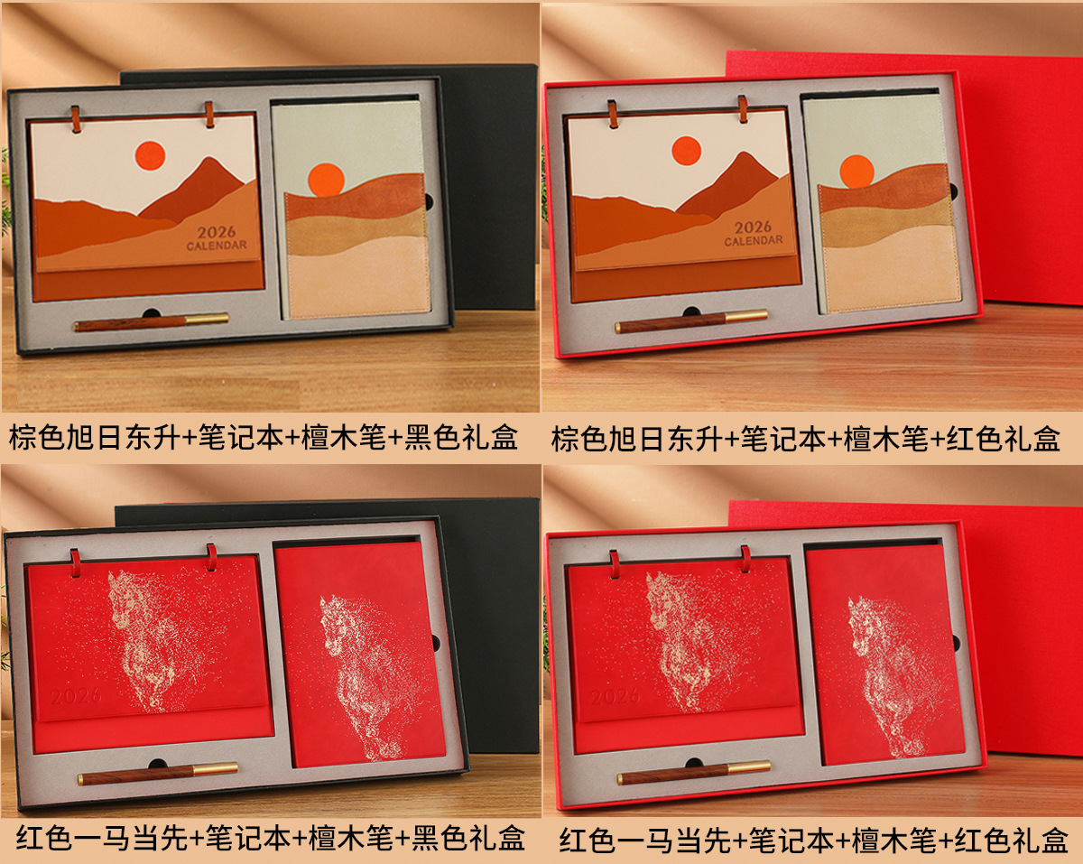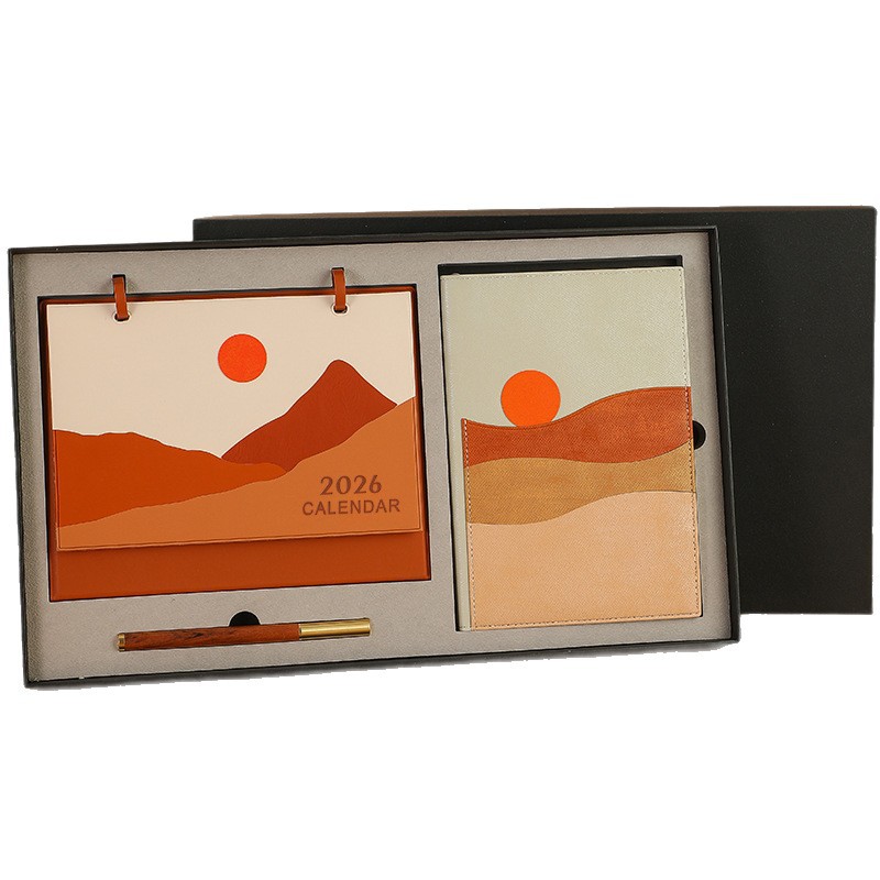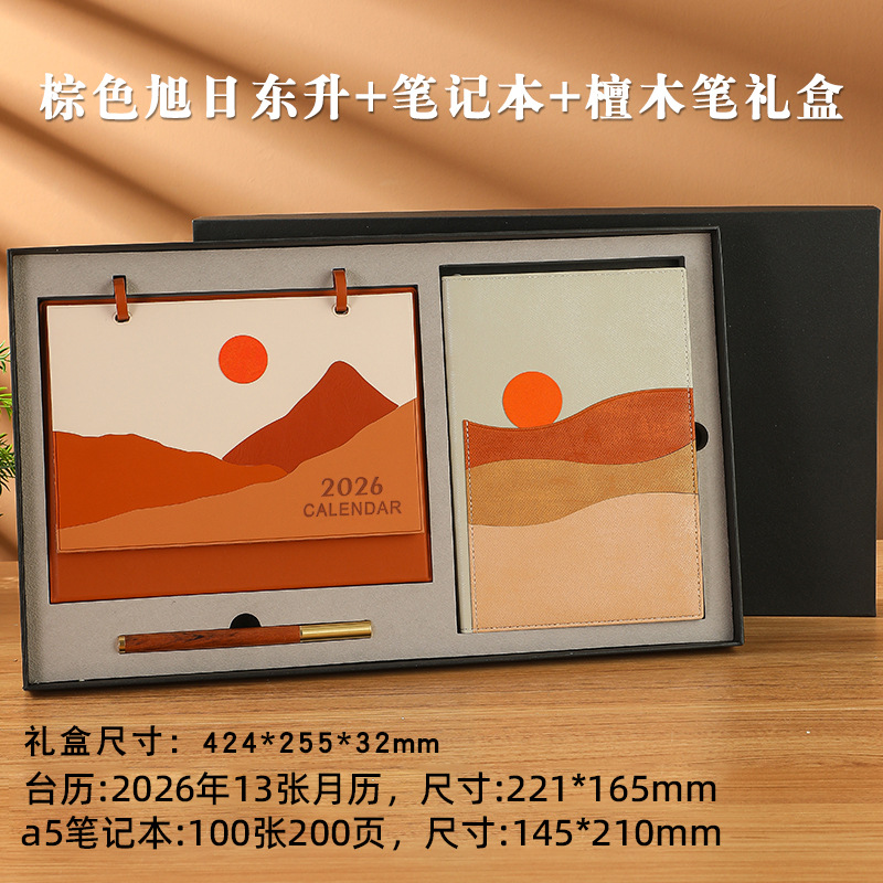 brown rising sun + notebook + black gift box
