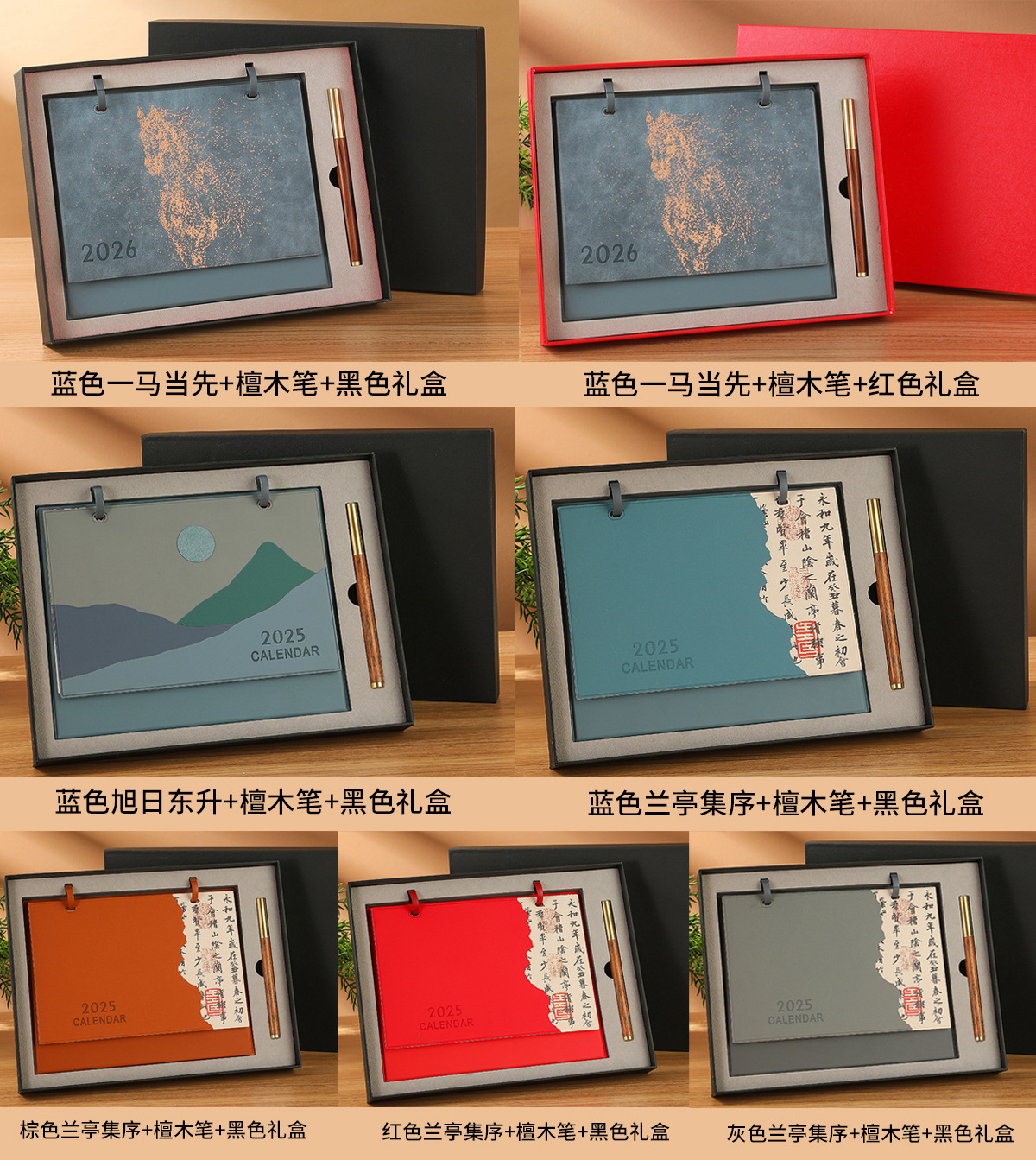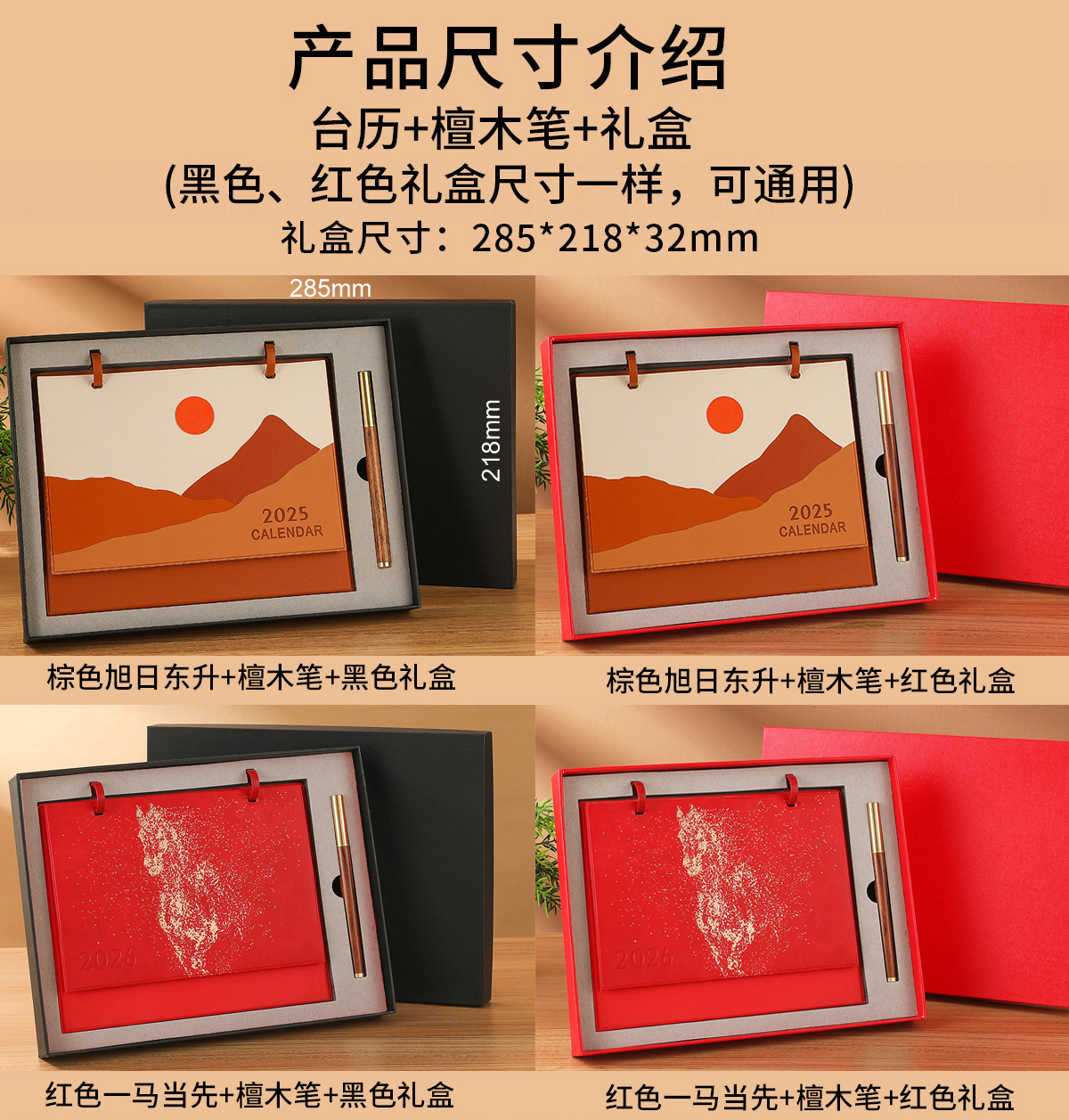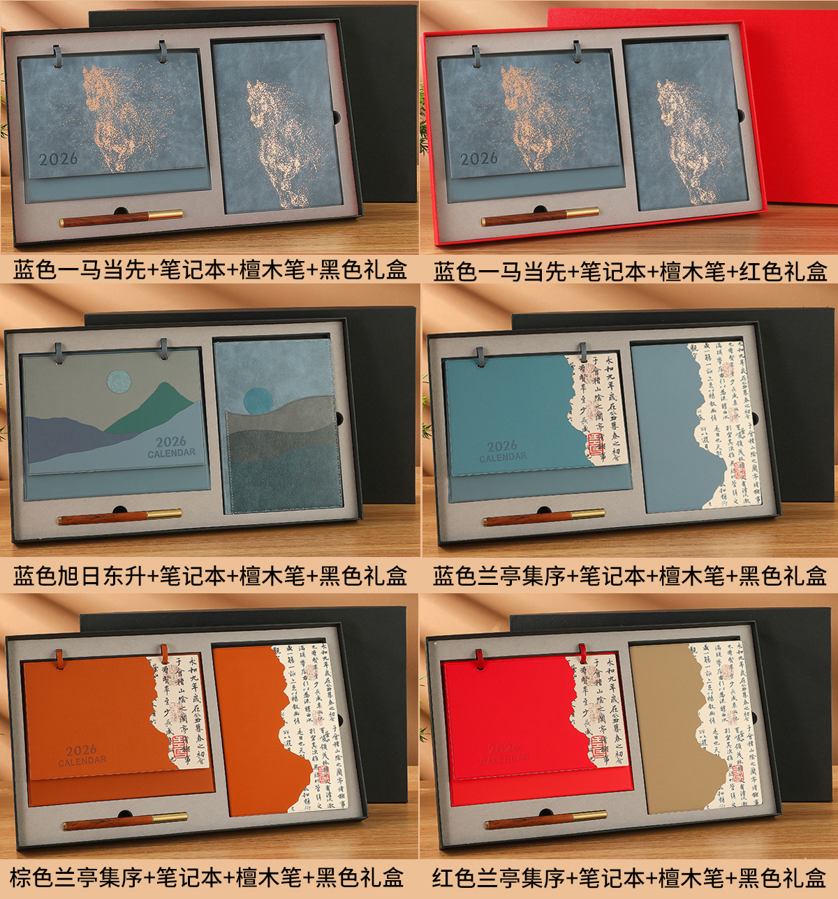 brown rising sun + notebook + black gift box