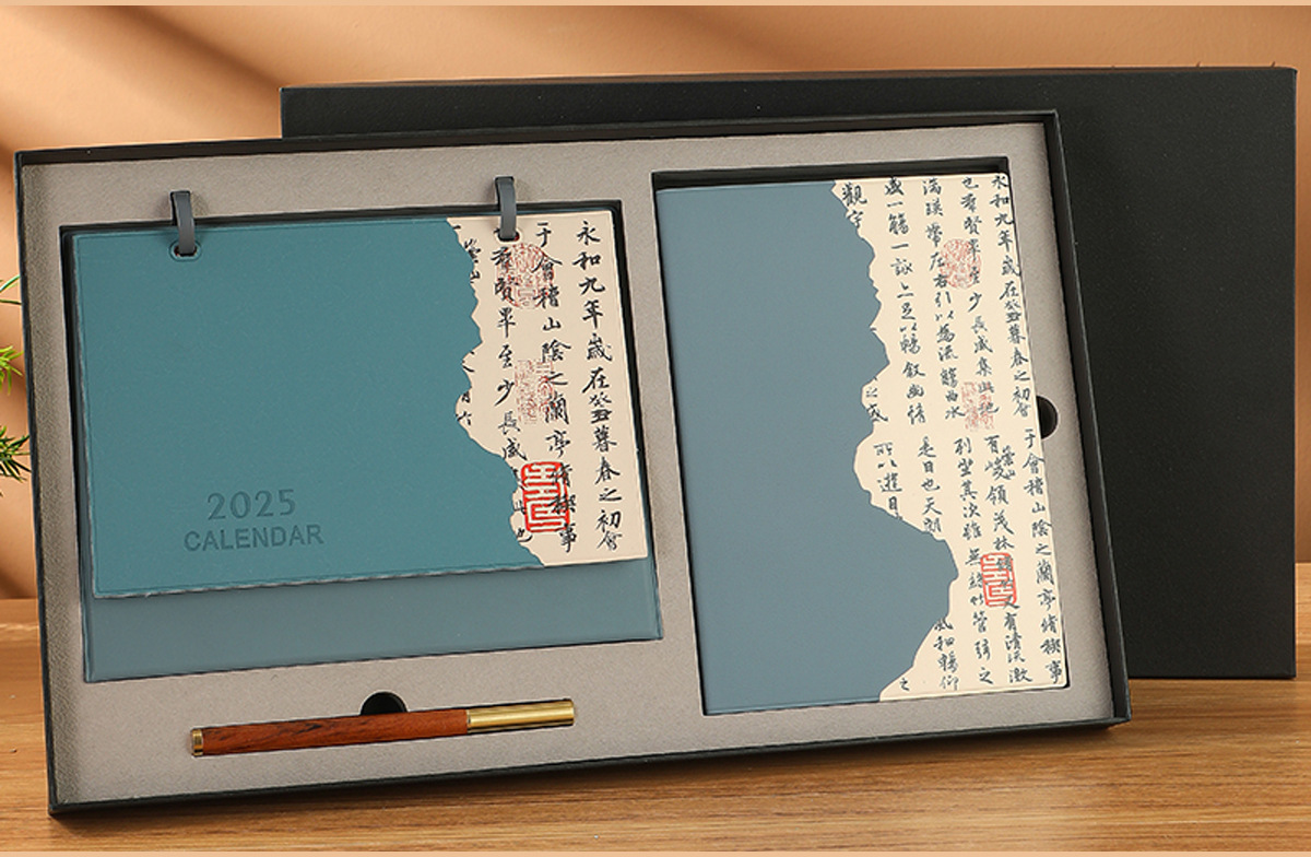 blue rising sun + notebook + black gift box