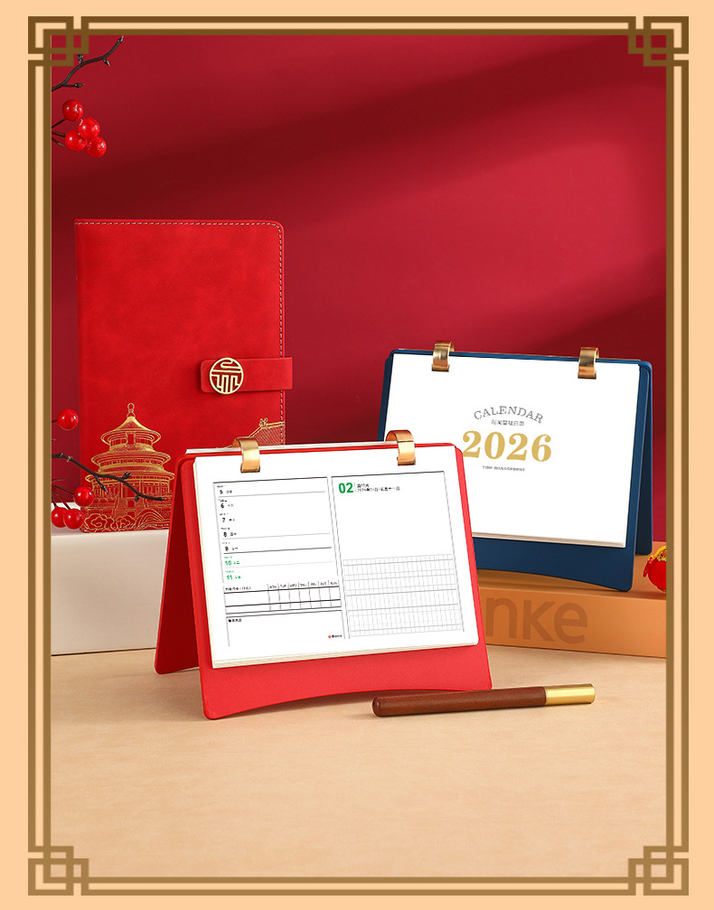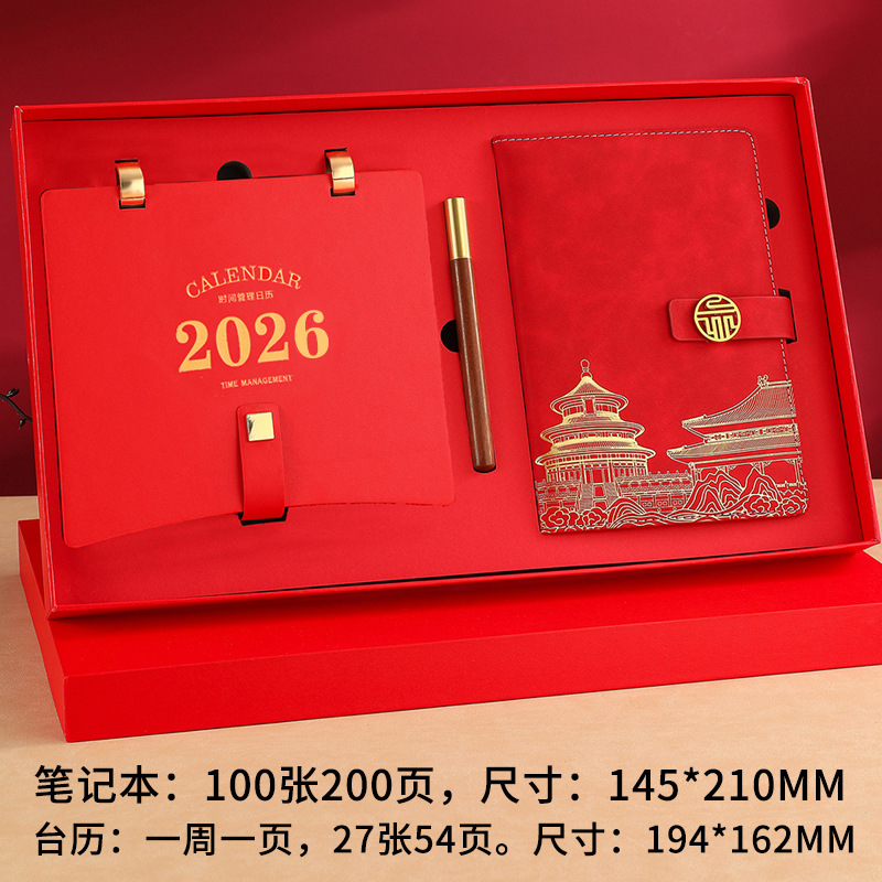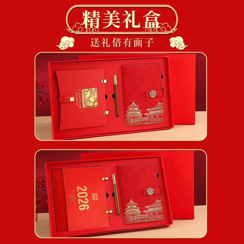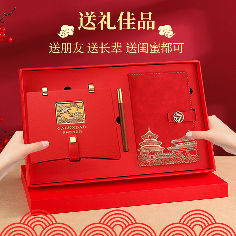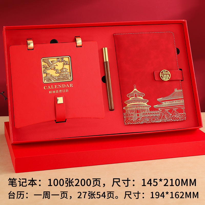 leather frame pengcheng wanli weekly calendar + notebook gift box