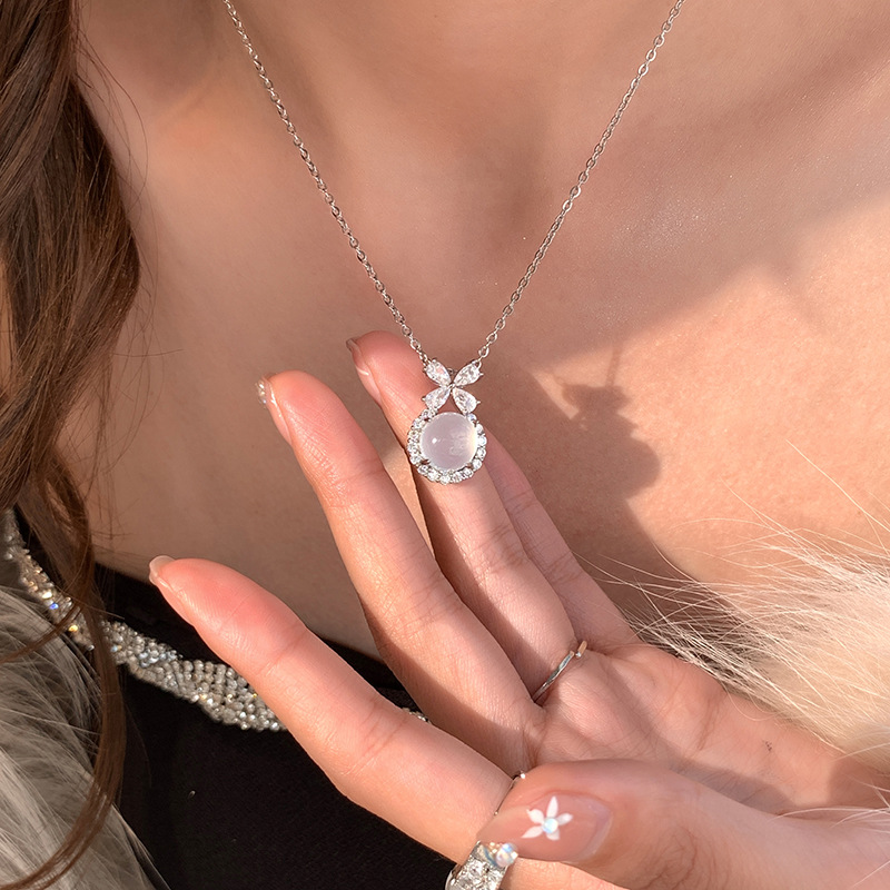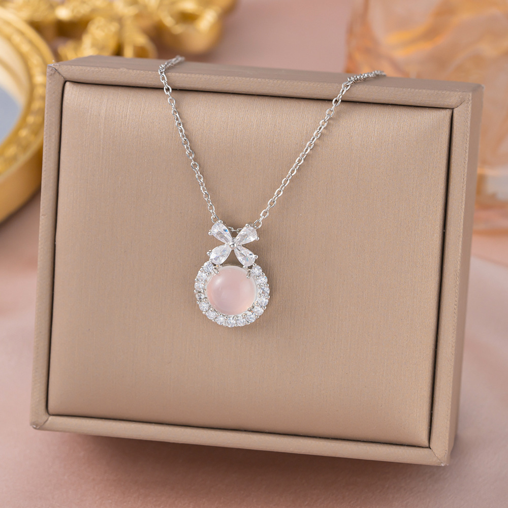 yxl9323 white jade flower necklace steel color