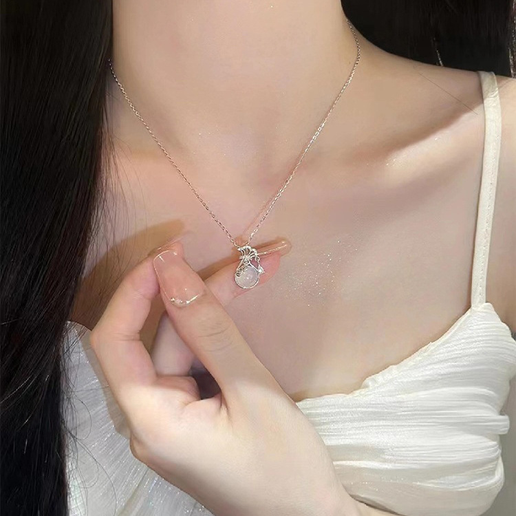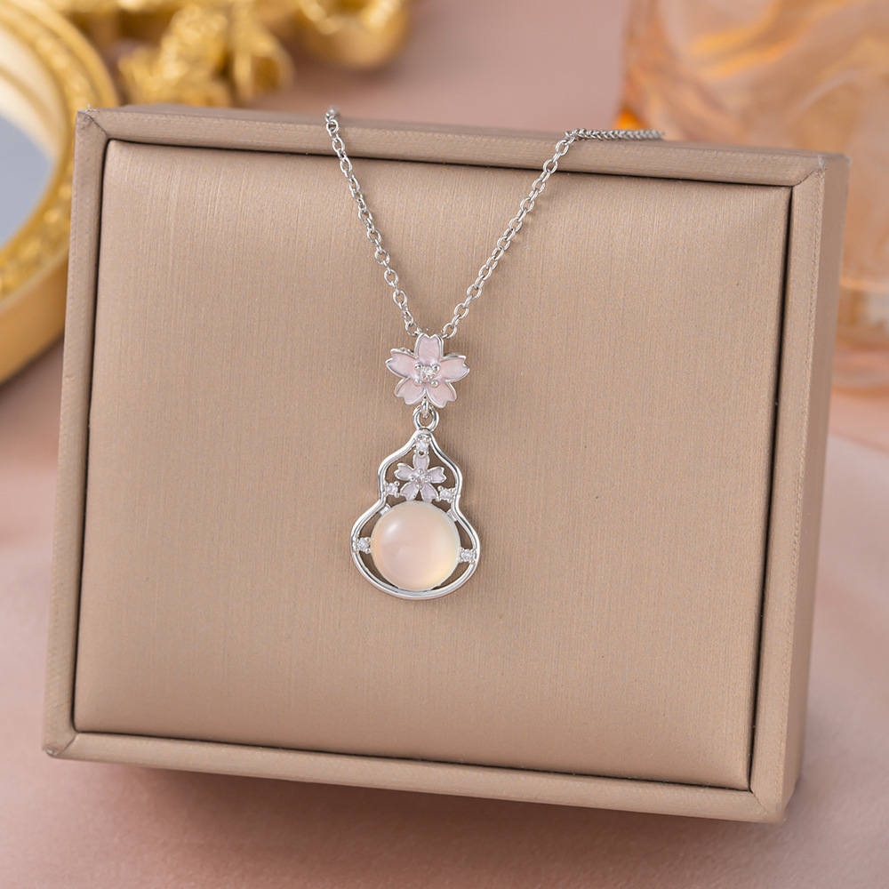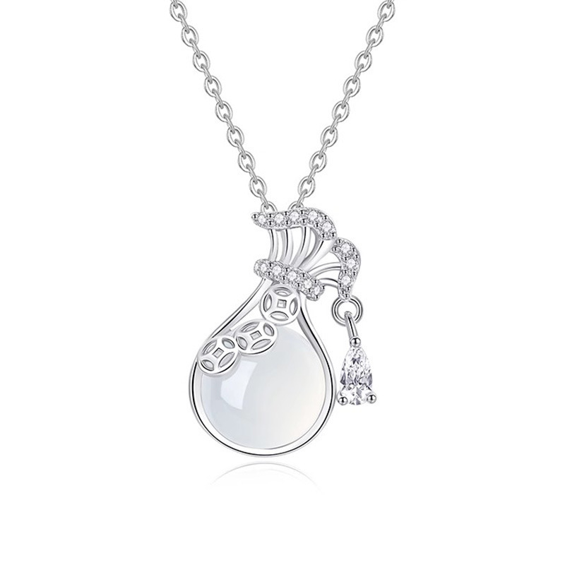 yxl9402 white jade gourd necklace steel color