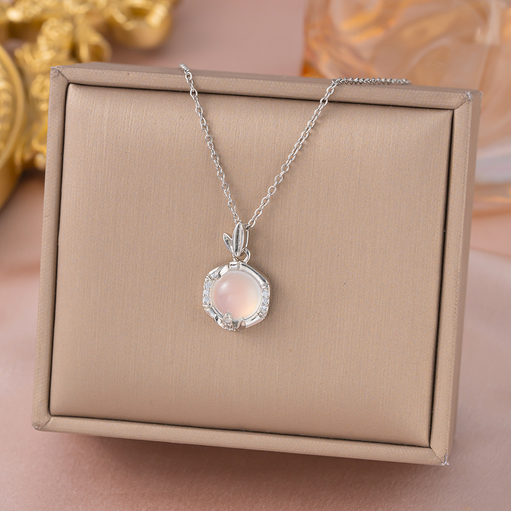 yxl9324 white jade bamboo necklace steel color