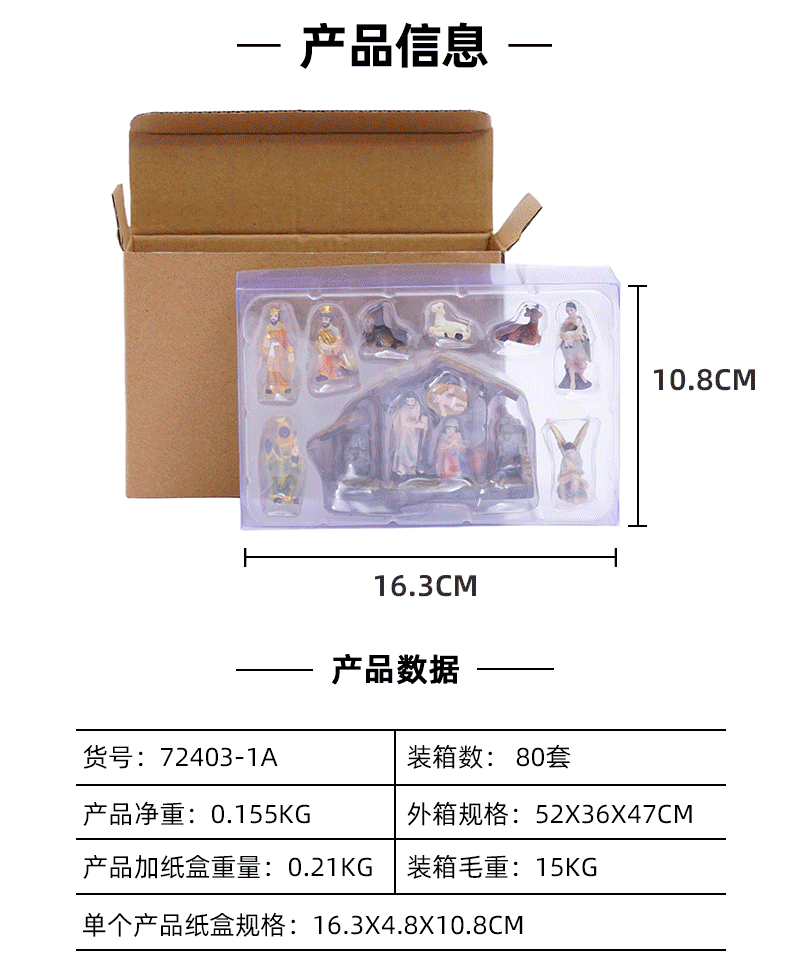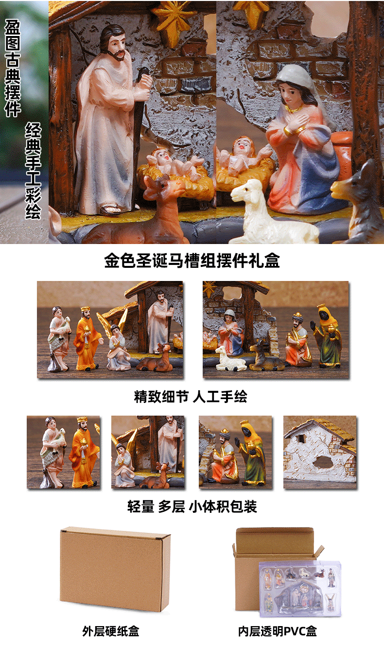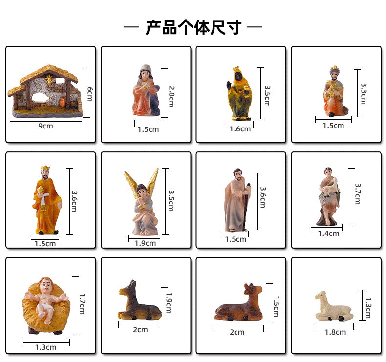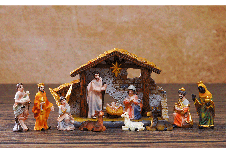 3.5cm high christmas manger set decoration gift box with house decoration gift resin crafts