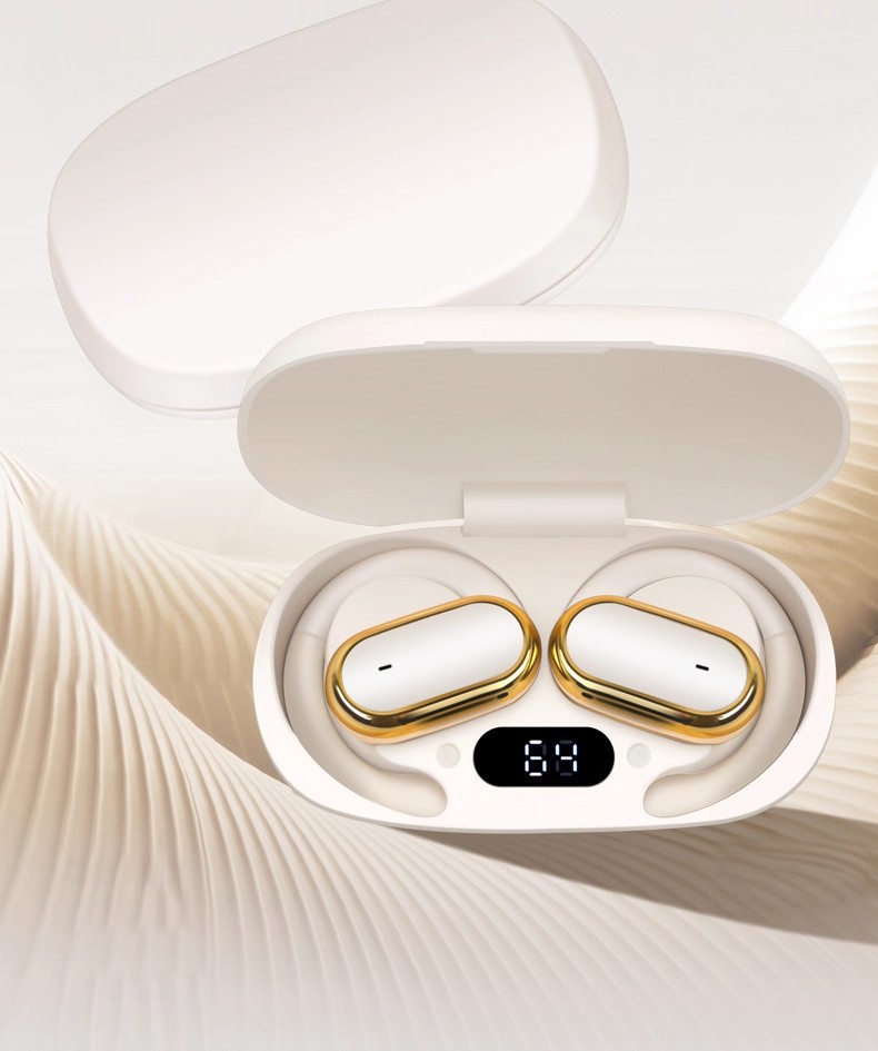 wireless charger bluetooth alarm clock sound light + mobile phone bracket + ear hook earphones-white