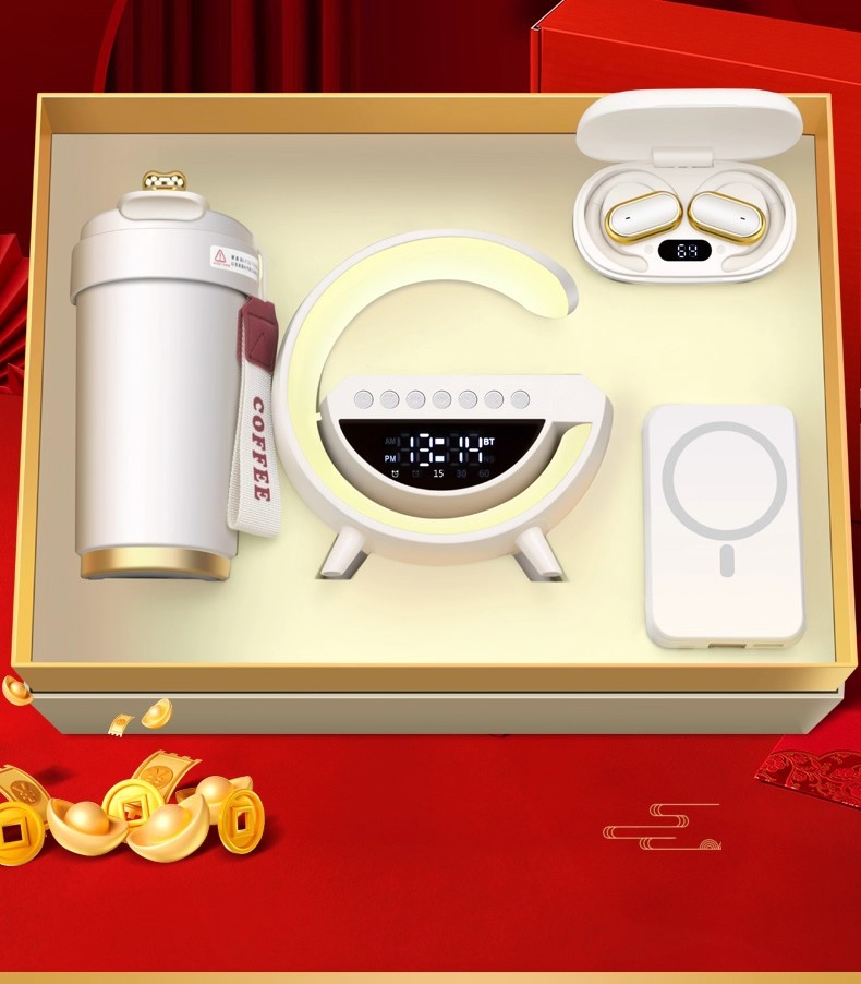 alarm clock audio + 3c magnetic power bank + earphone-white
