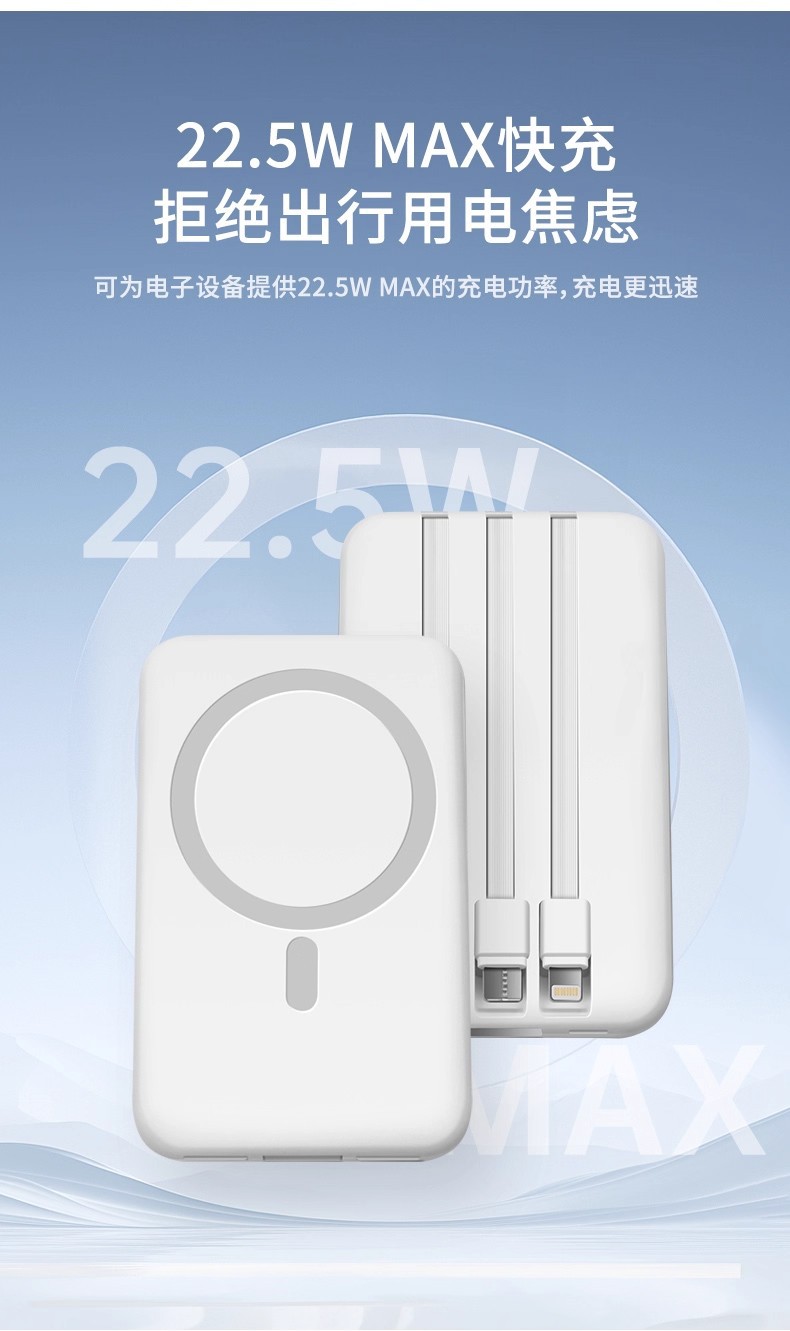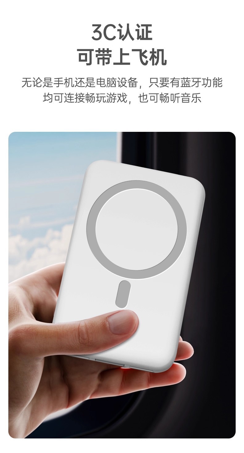 sound light + 3c wireless + with cable power bank-white