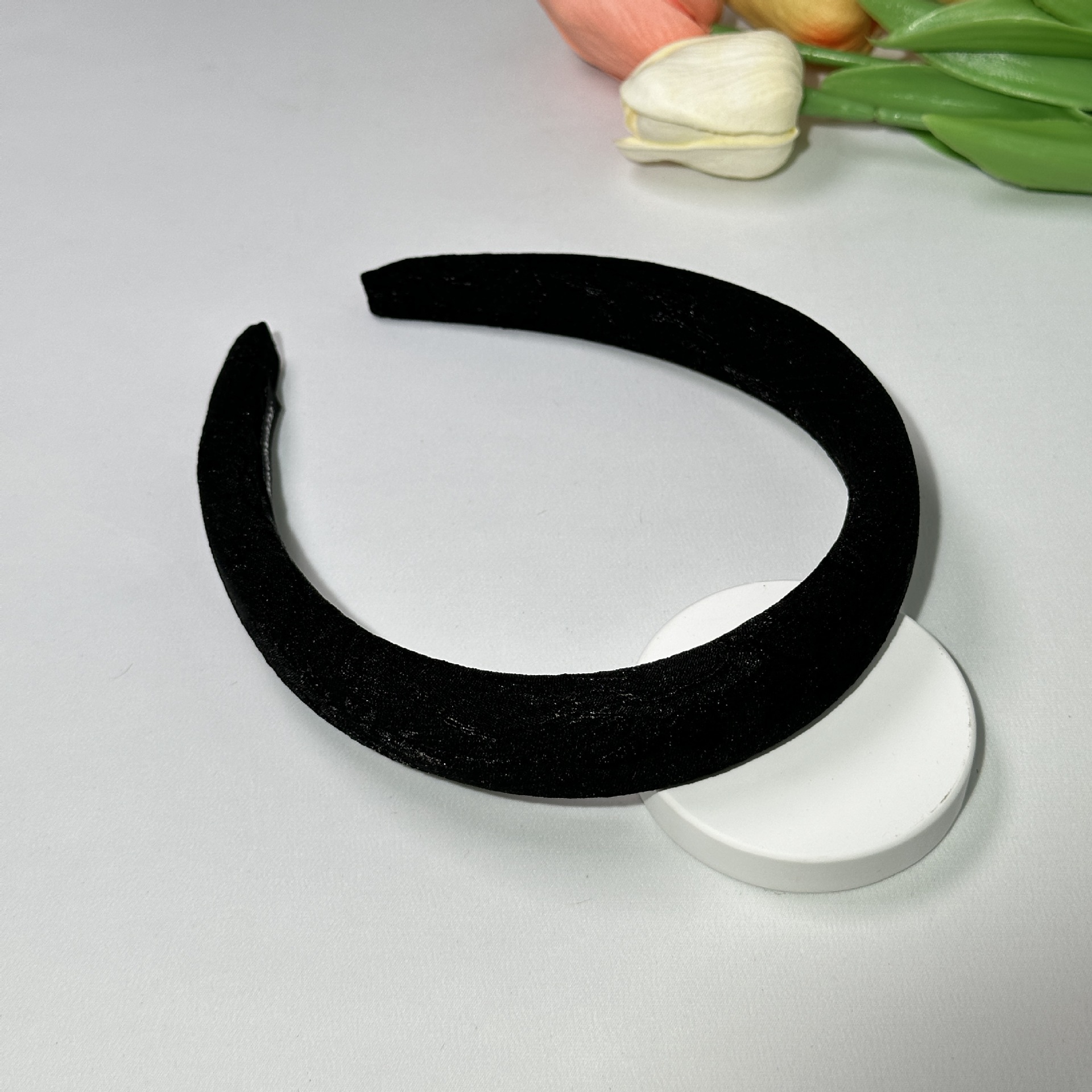 2.5cm black flower embroidery sponge headband