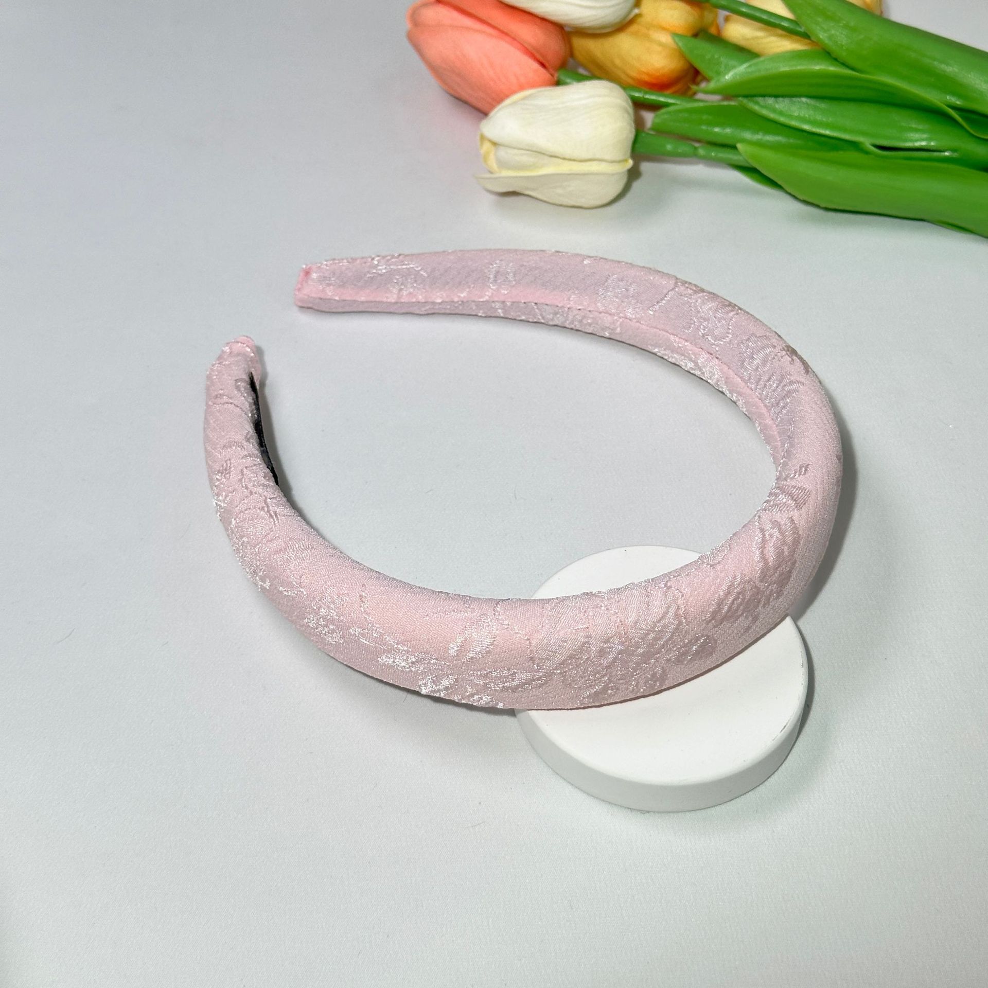 2.5cm pink flower embroidery sponge headband