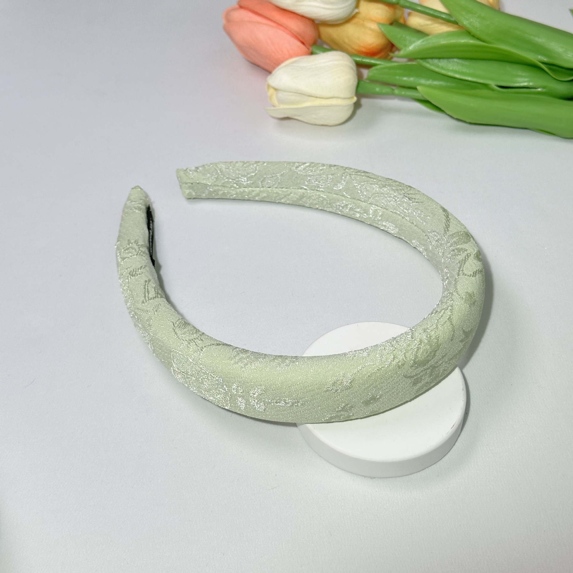 2.5cm light green flower embroidery sponge headband