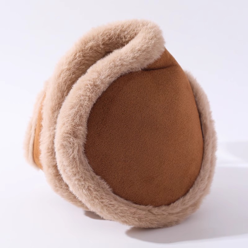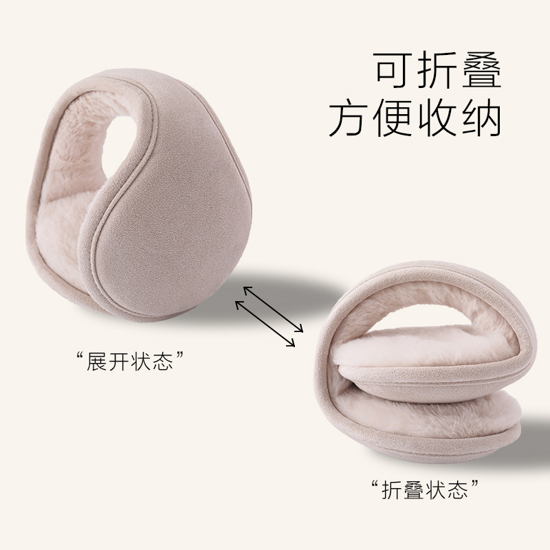 beige suede thickened back folding earmuffs