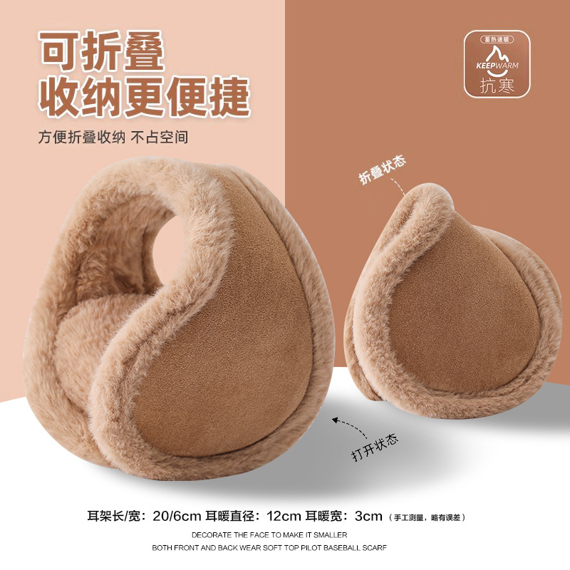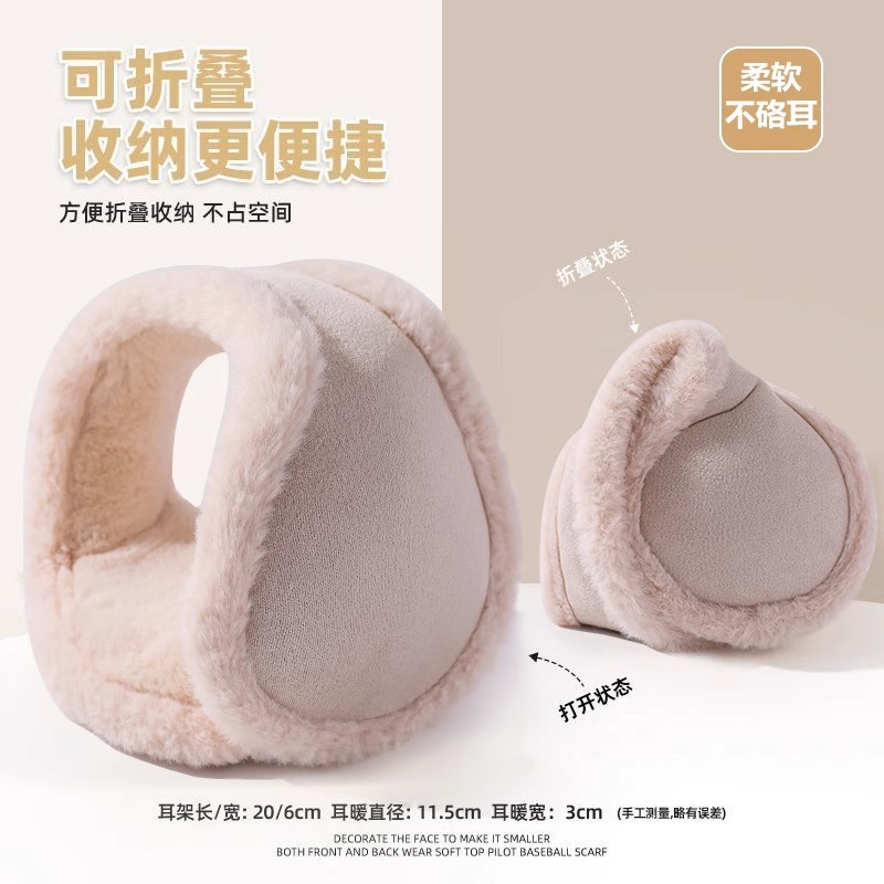 beige suede plus-sized thickened fleece back wear folding earmuffs