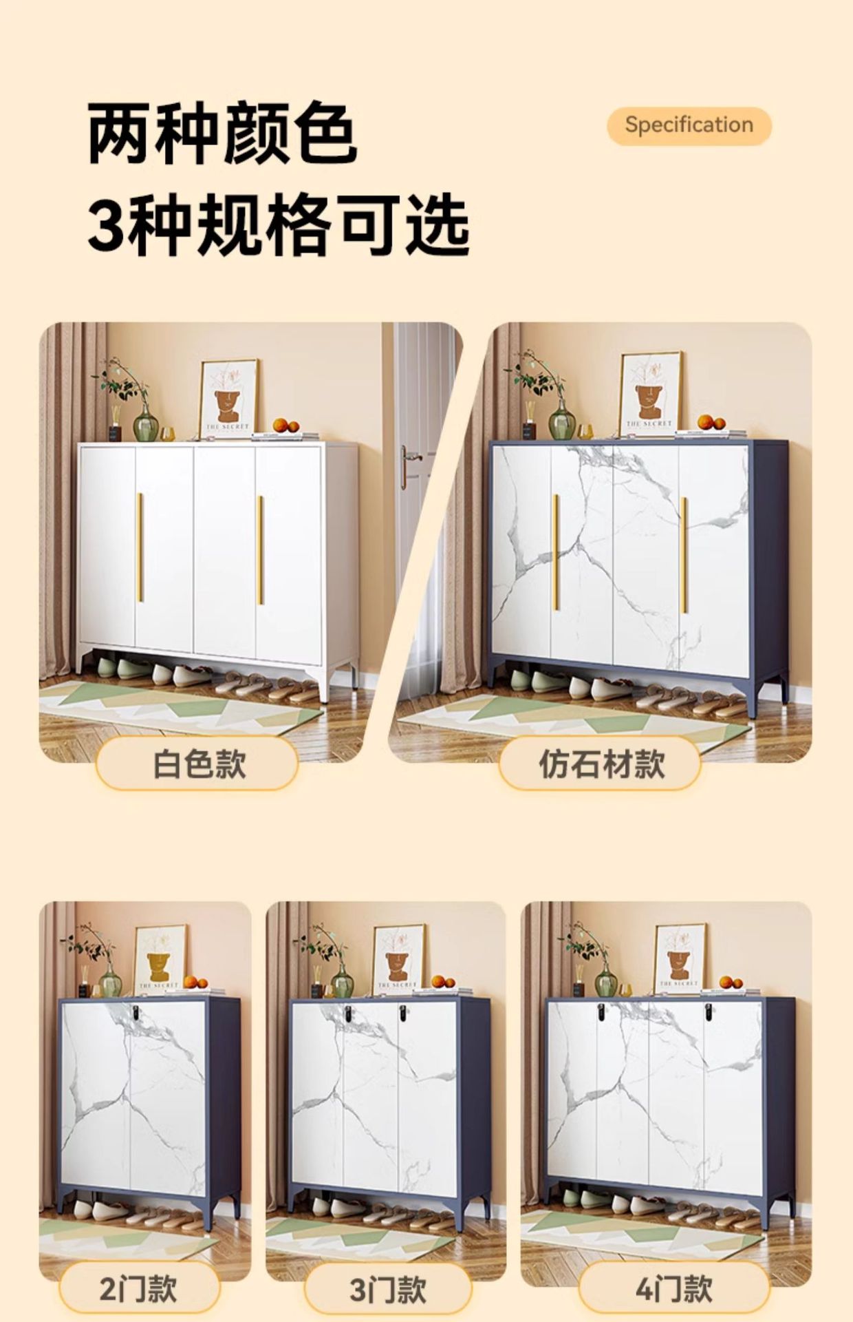 [ivory white] three-door golden handle-length 91 * width 35 * height 102.5cm