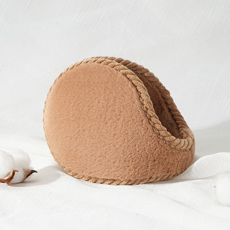 rabbit fur beveled earmuffs [khaki brown]]