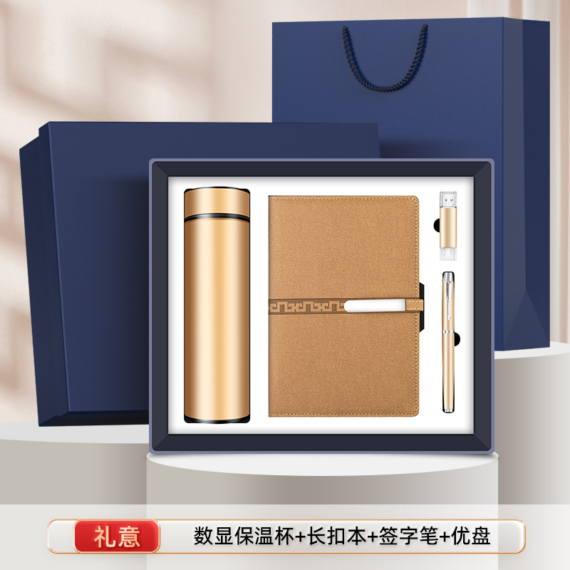 four-piece set [cup + long buckle + round pen + u disk] gold