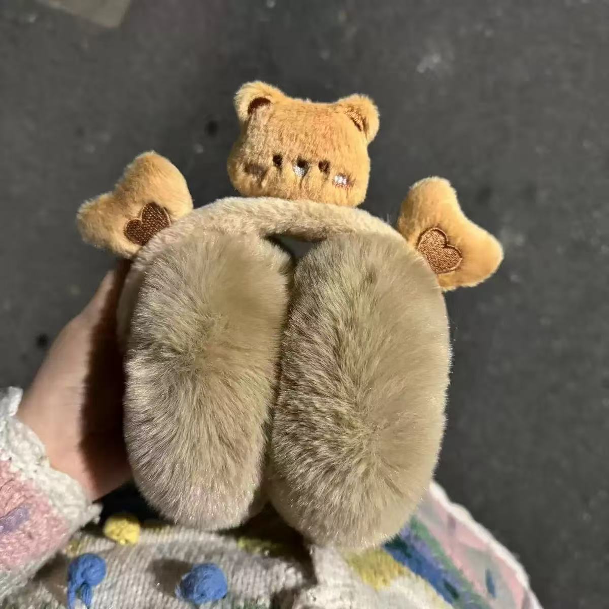 khaki three-dimensional bear earmuffs