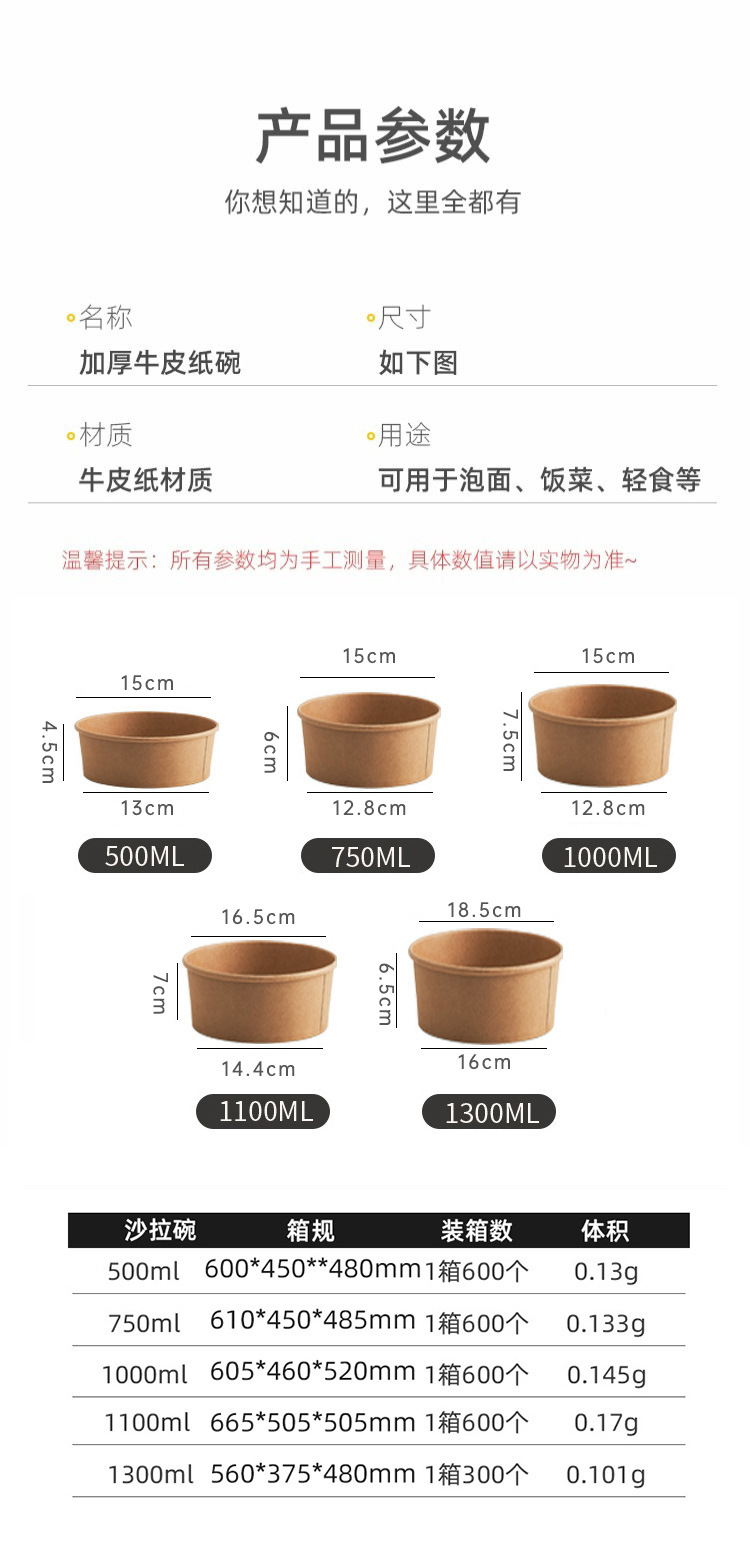 thicken kraft paper bowl disposable fruit salad to-go box light food takeaway lunch box with lid round