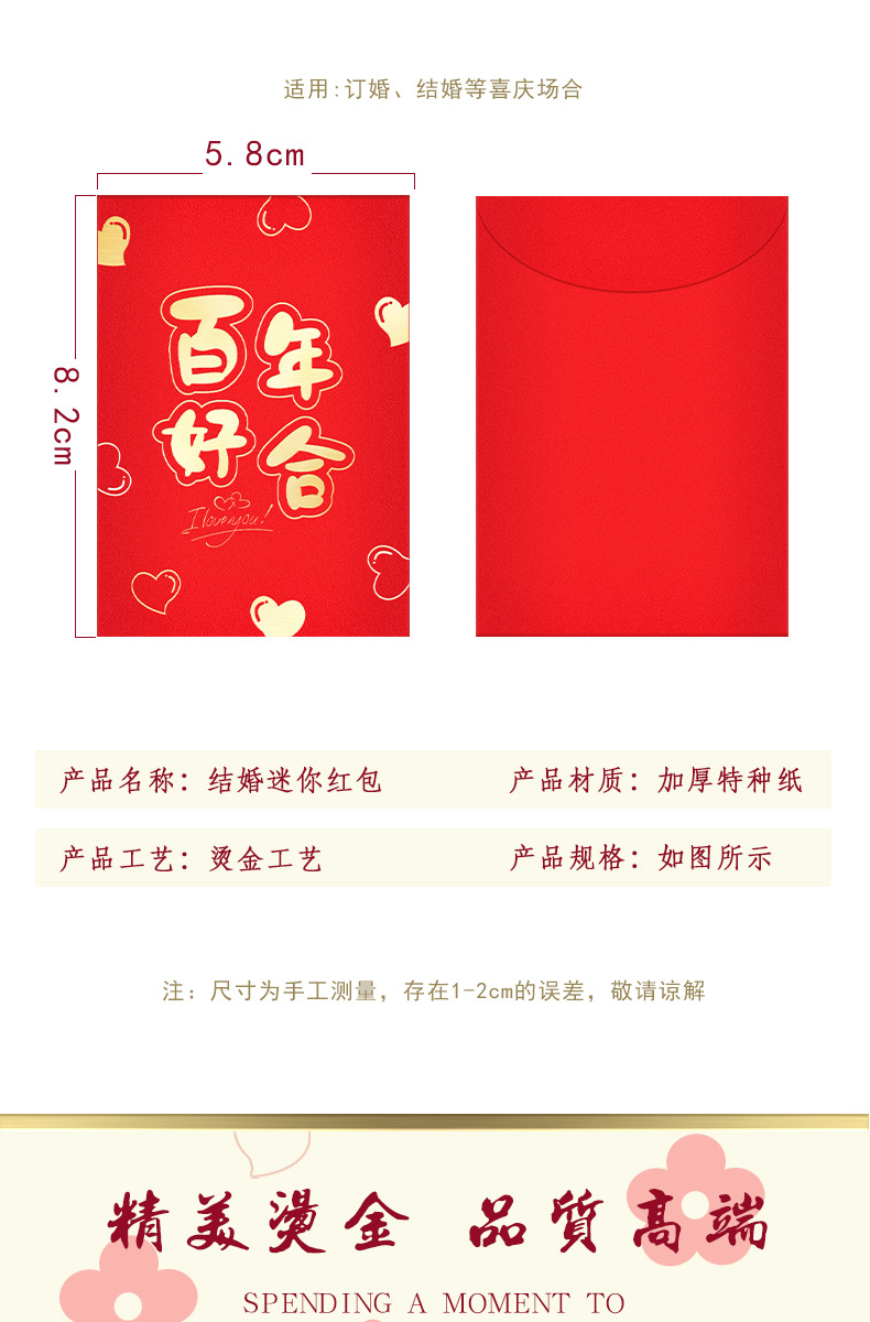 | wedding red envelope (50 pcs/bag) | CN¥ 5.61 | 4949 piece available |