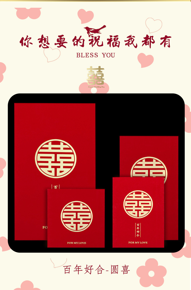 | wedding red envelope (50 pcs/bag) | CN¥ 5.61 | 4945 piece available |