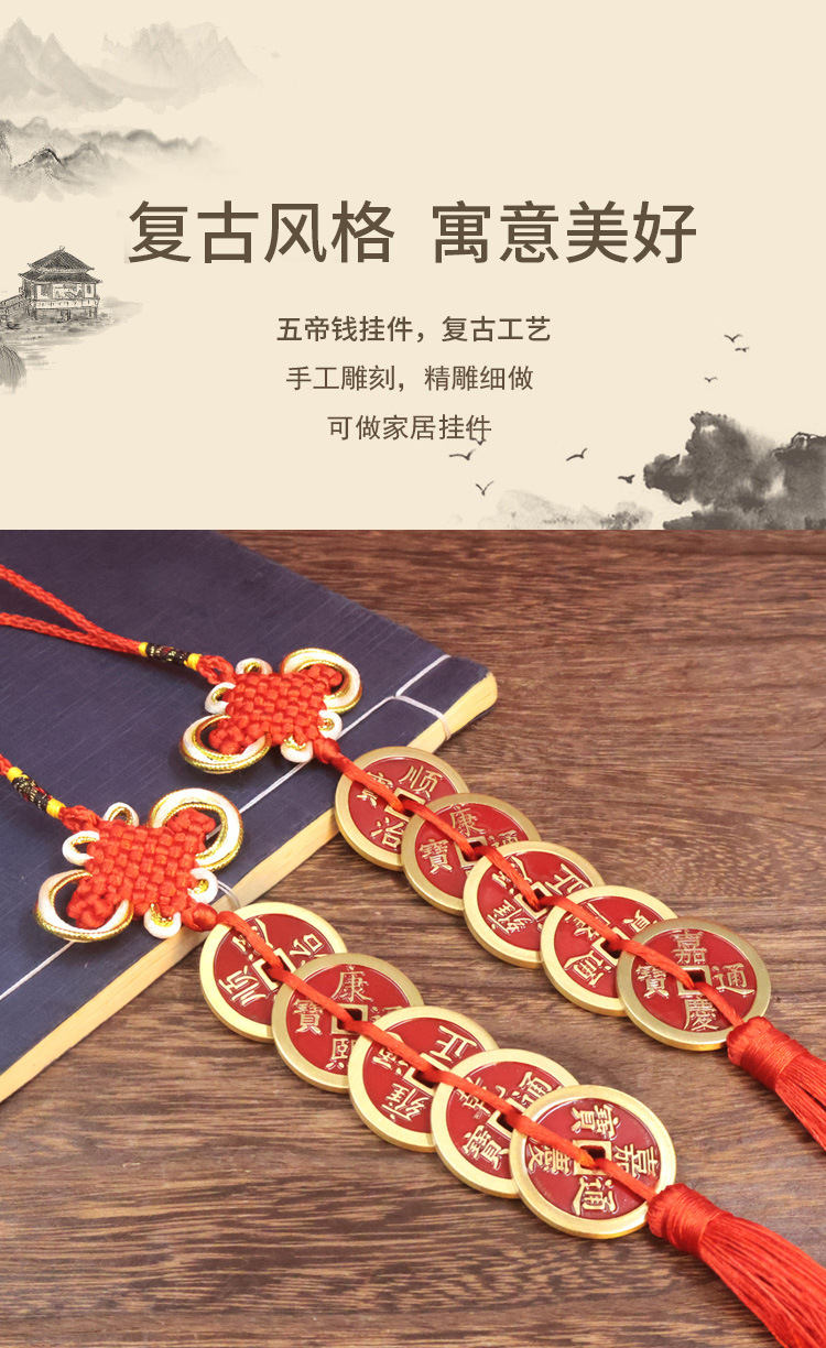 red town library qing dynasty five emperors' coins chinese knot [a pair]]