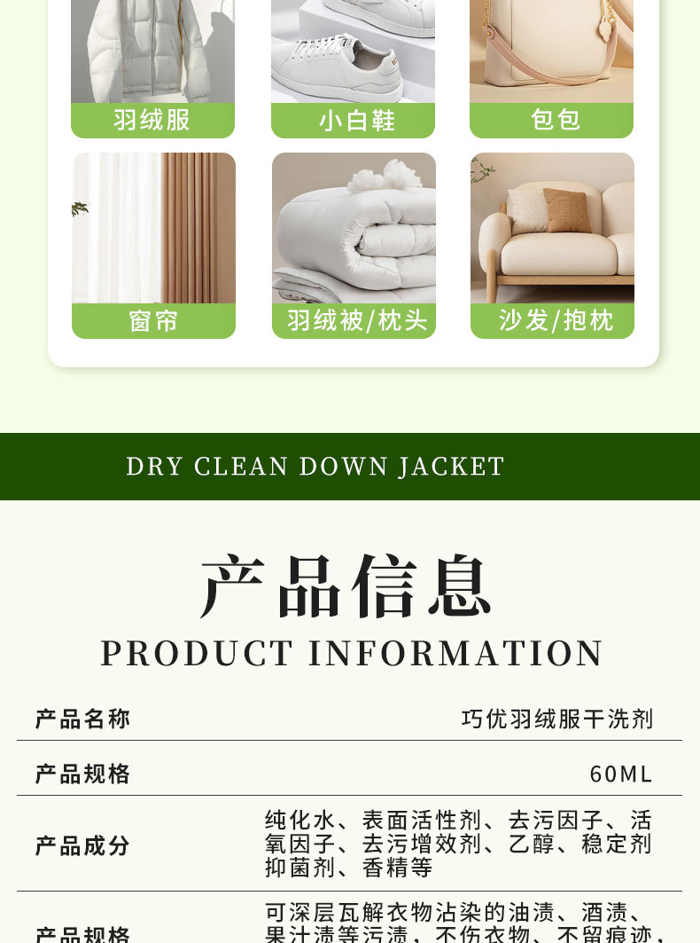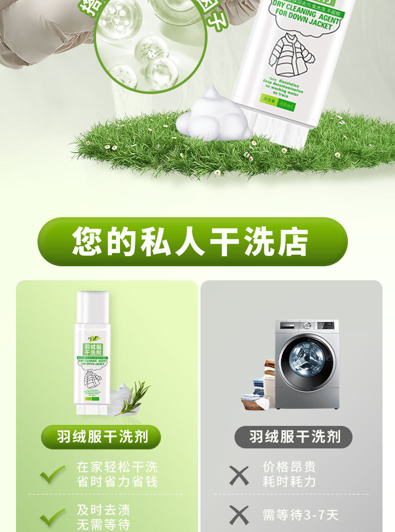 qiaoyou down jacket dry cleaning agent 60ml (with press bruch head)