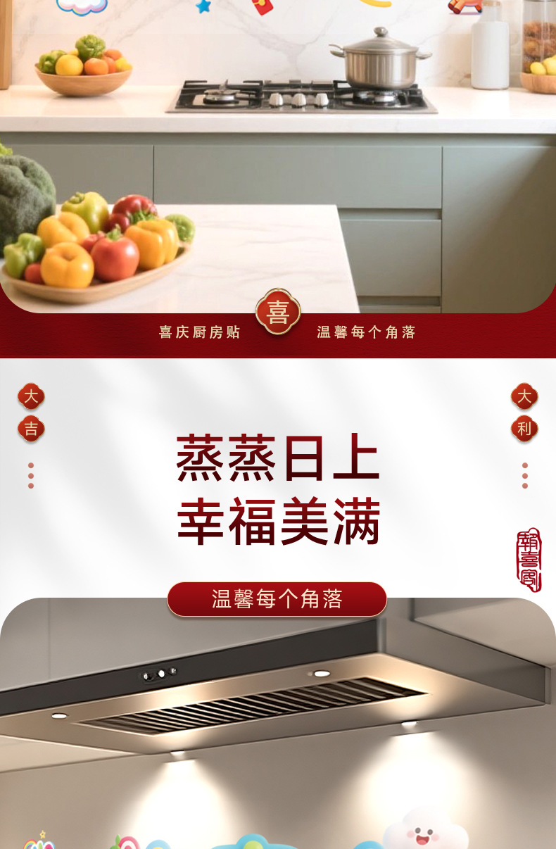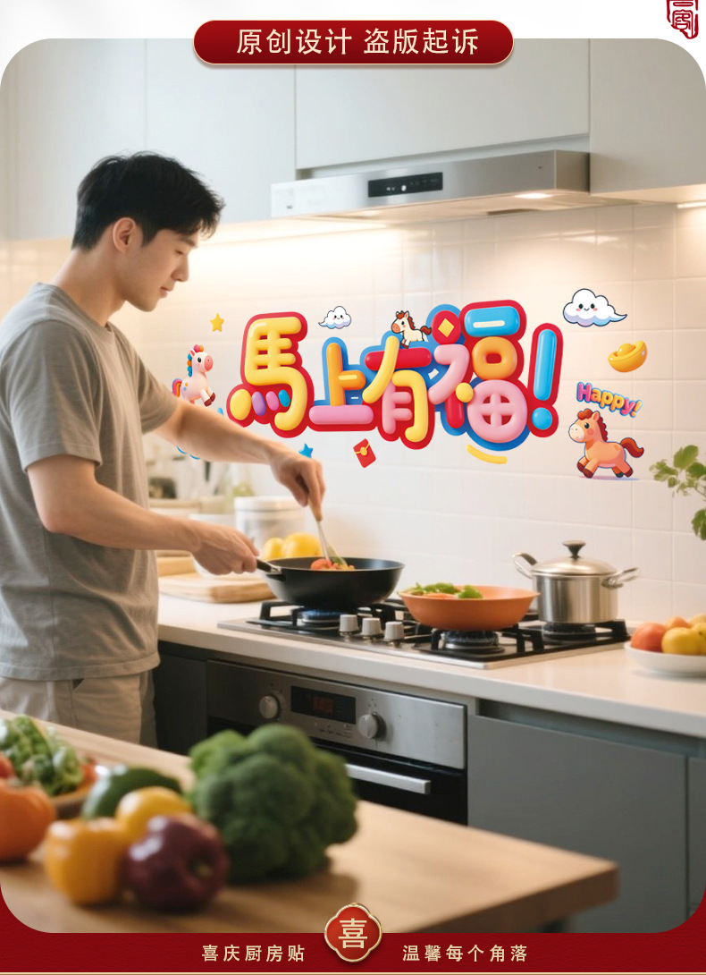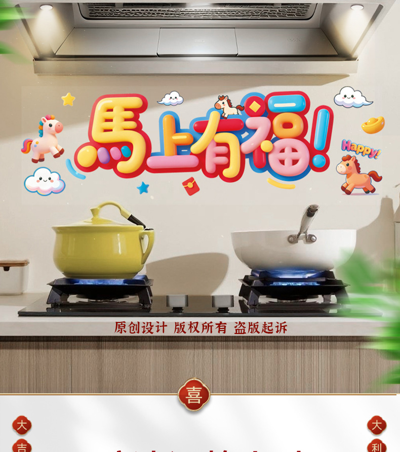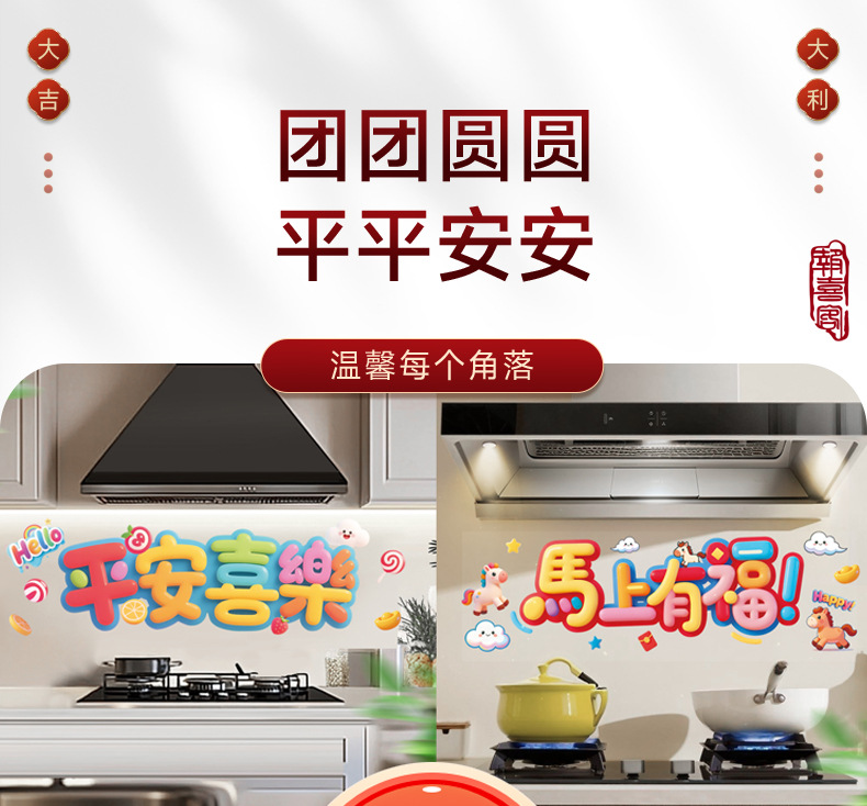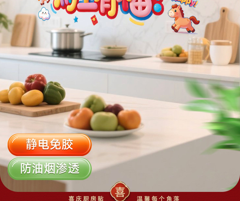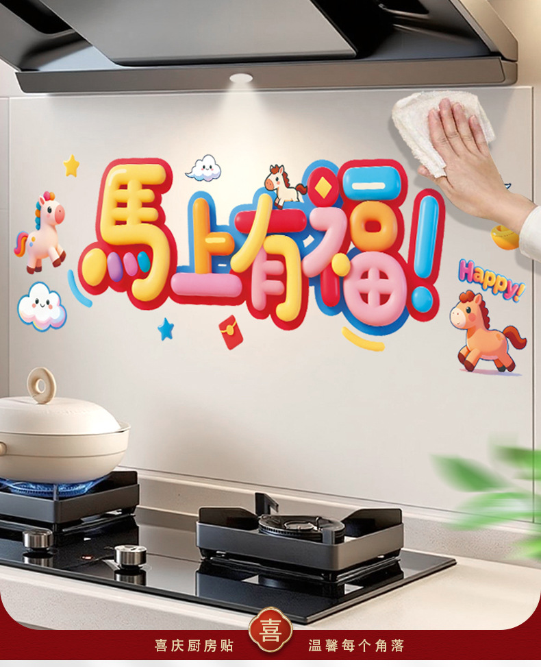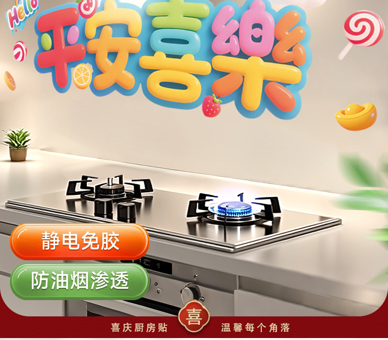 kitchen sticker-colorful ping an xi le 58 * 88cm + scraper