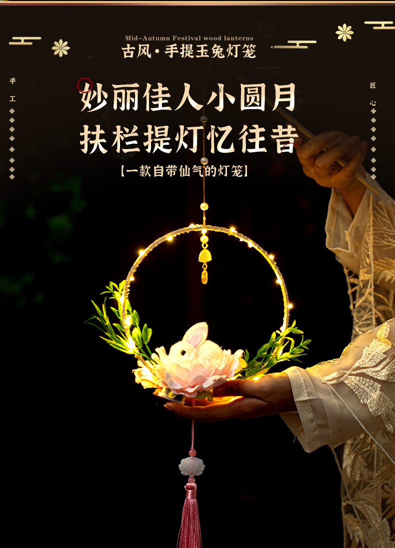 white jade hare festive lantern-feather model-diy material package