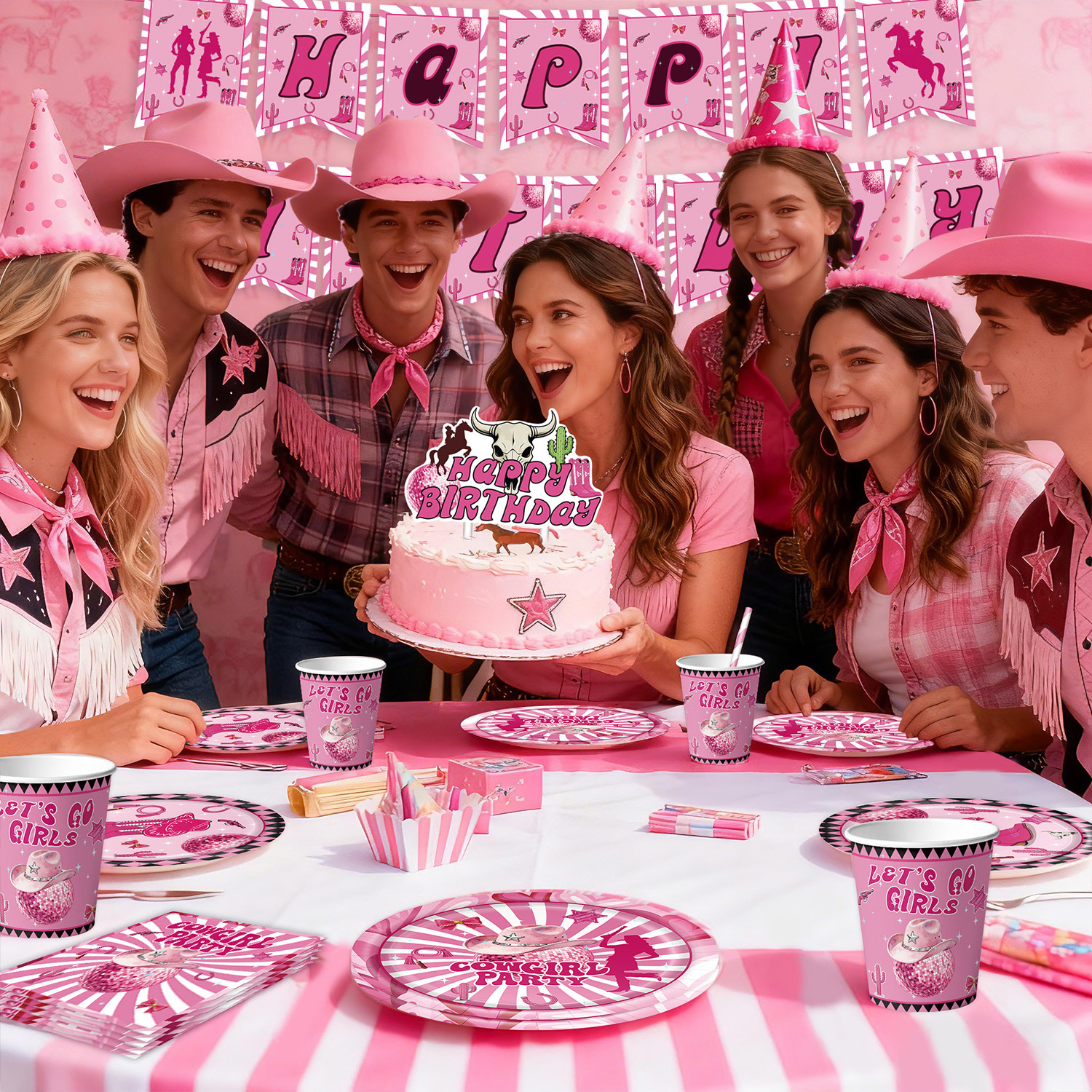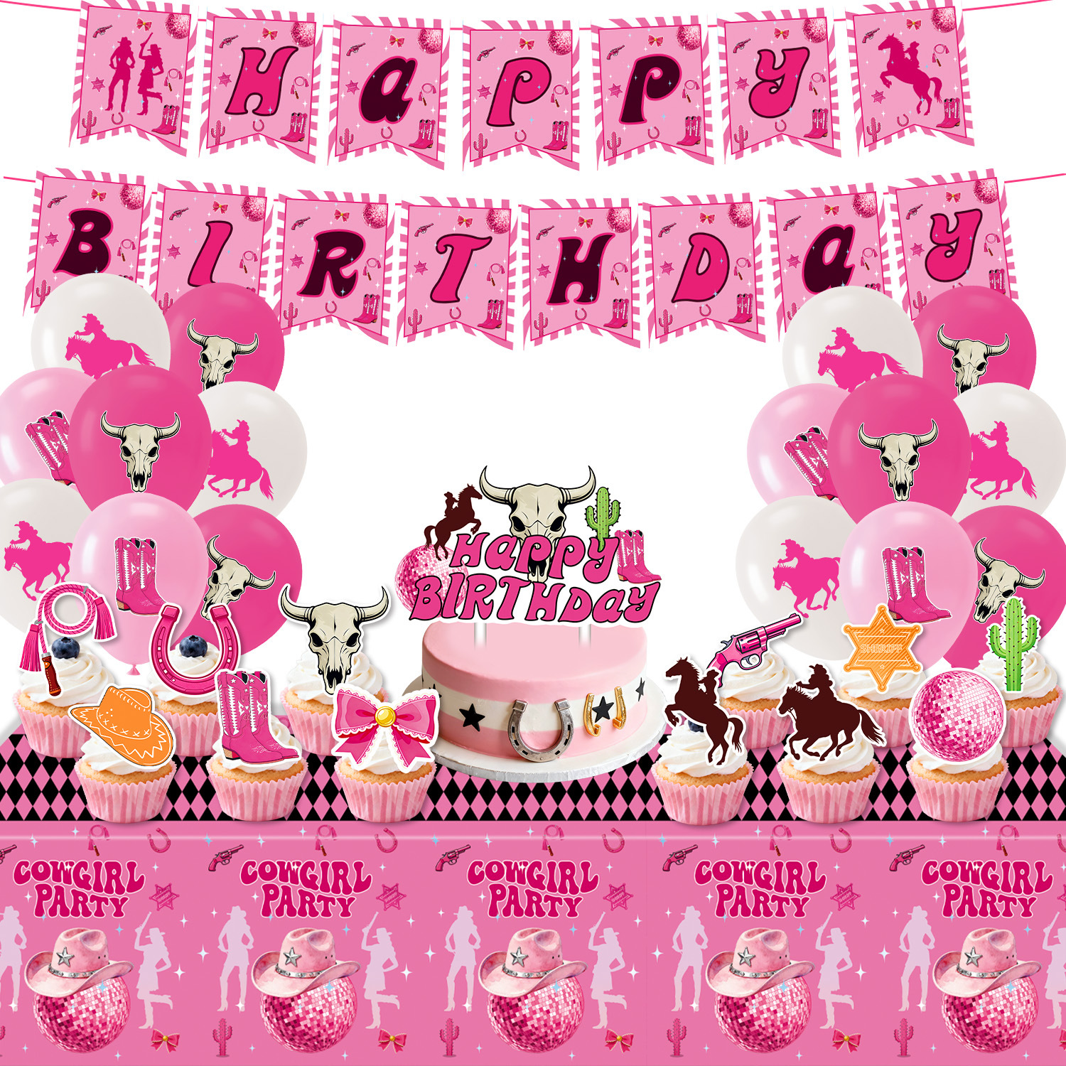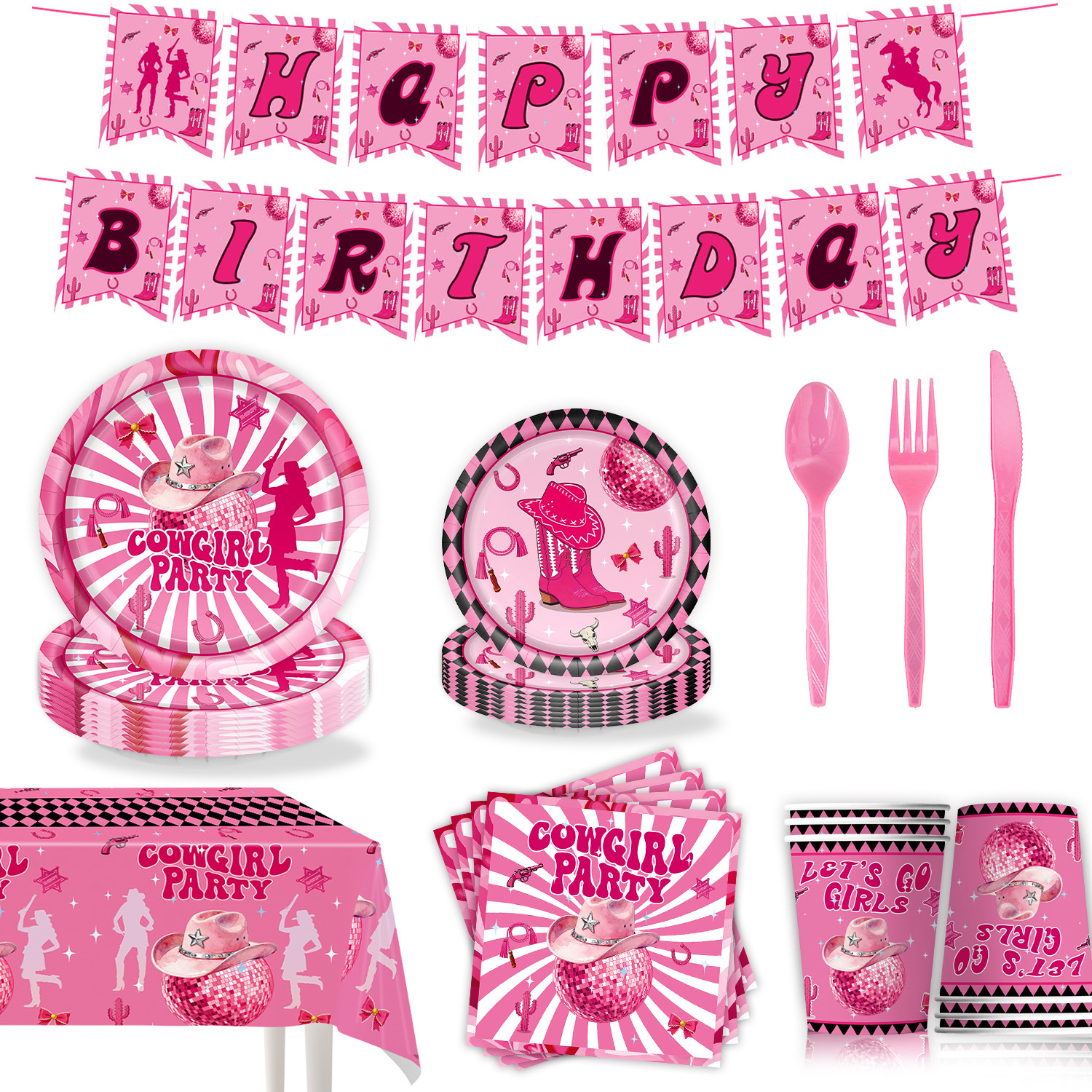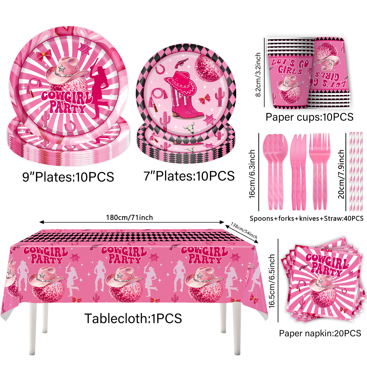 9-piece set of 96pcs (7-inch 10+9-inch 10 + paper cup 10 + tissue 20 + tablecloth 1 + hanging flag 15 + knife and fork