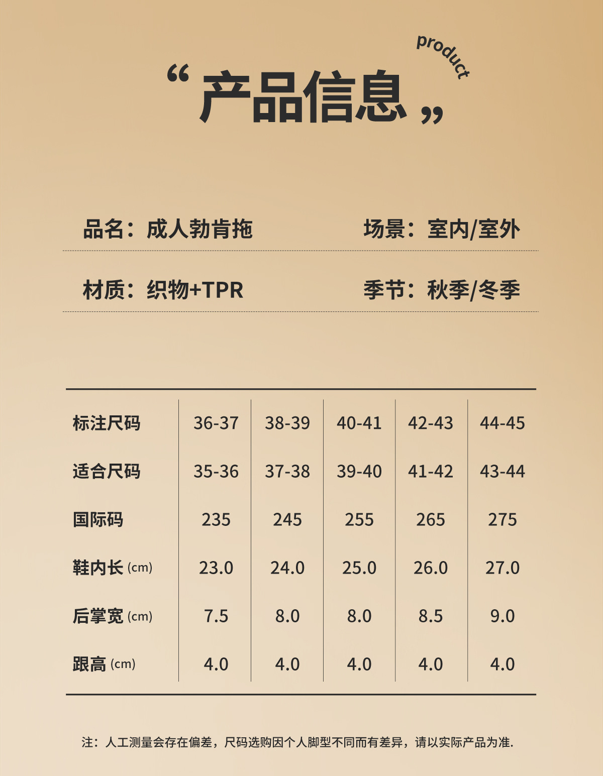 Size issue:The slippers are slightly smaller (for people with wide feet or who have trouble fitting into the shoes, it is recommended to choose one size larger). Please contact the customer service before purchasing.