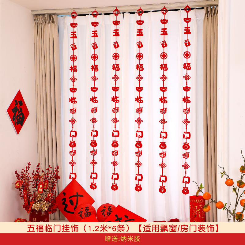 new year floor-to-ceiling window ornaments-five blessings