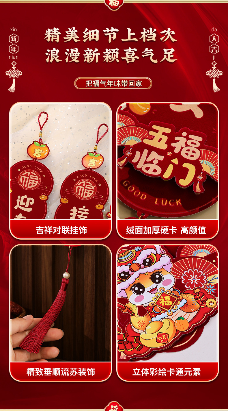 | wine red flocking three-dimensional color card new year couplet (finished product delivery to get hook adhesive) | CN¥ 10.53 | 339 piece available |
