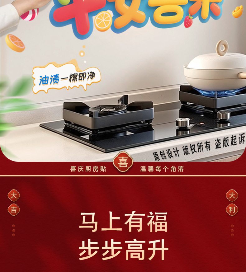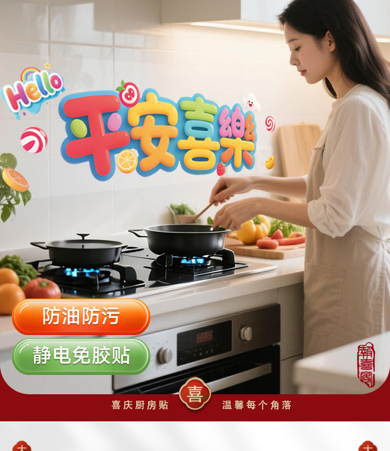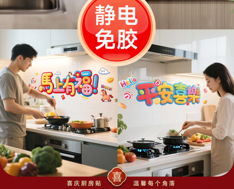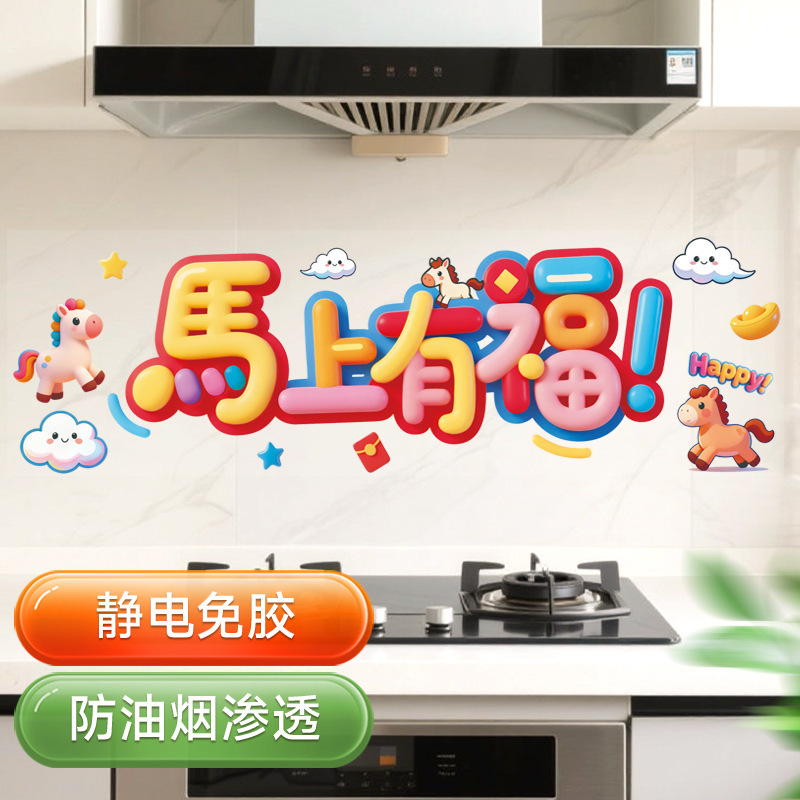 kitchen sticker-colorful ping an xi le 58 * 88cm + scraper