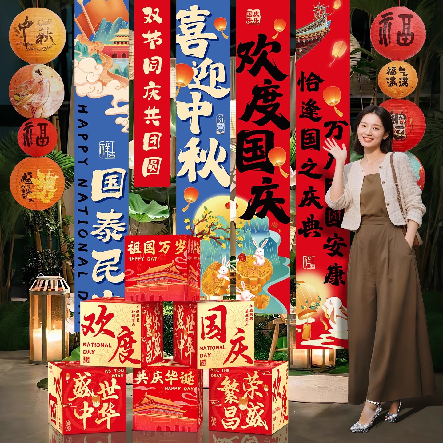 column set good luck comes 5 lanterns + column