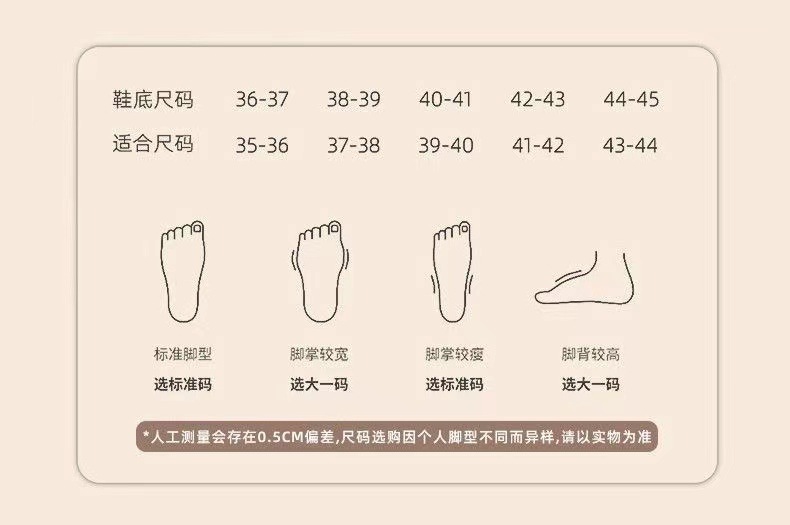 Size issue:The slippers are slightly smaller (for people with wide feet or who have trouble fitting into the shoes, it is recommended to choose one size larger). Please contact the customer service before purchasing.