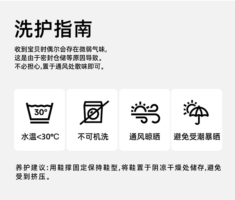 Smell problem:This store is a direct manufacturer, and the new shoes sealed packaging may have a slight odor, which has nothing to do with the quality. Placing them in a cool and ventilated place will help the odor dissipate.