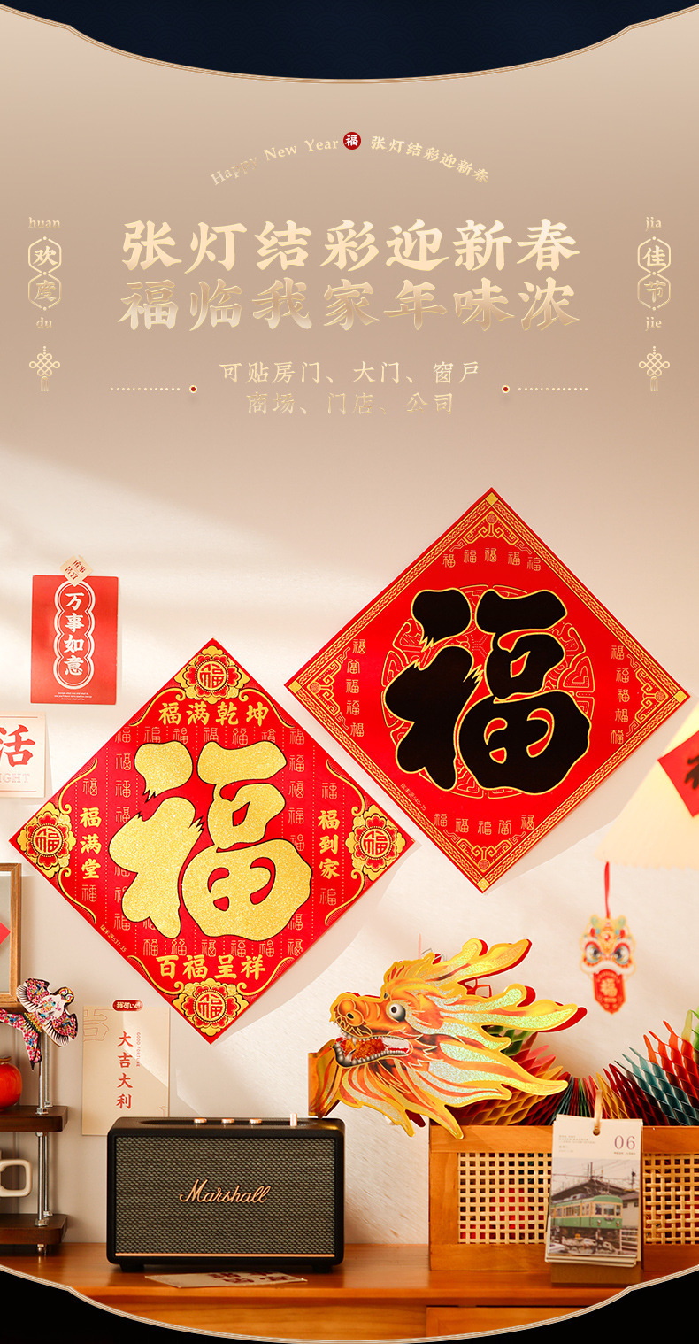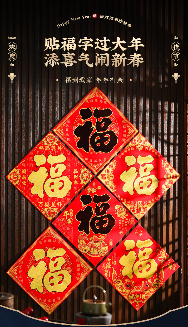 35# [five blessings] flannel fu character-self-adhesive