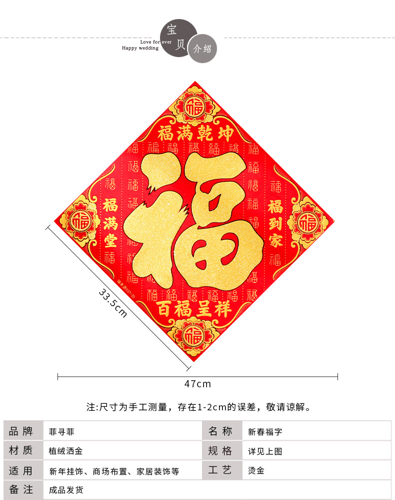 35# [fu man qian kun] flannel fu character-with adhesive