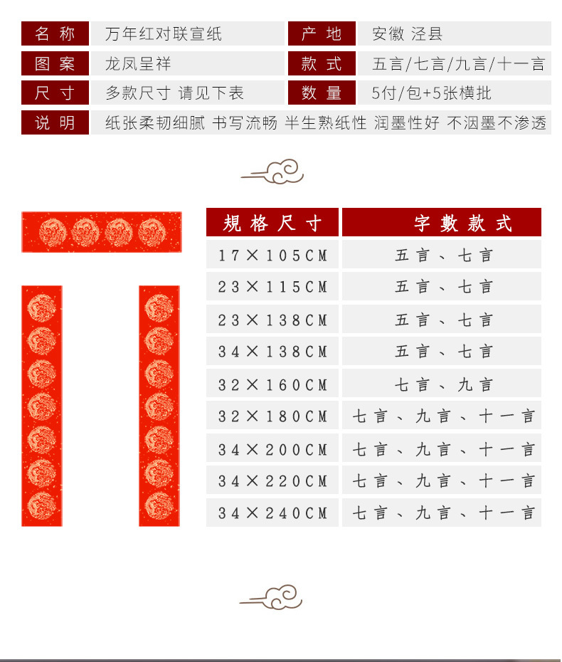 | 32*180 nine words (5 pairs and 5 horizontal) | CN¥ 11.59 | 49957 pack available |