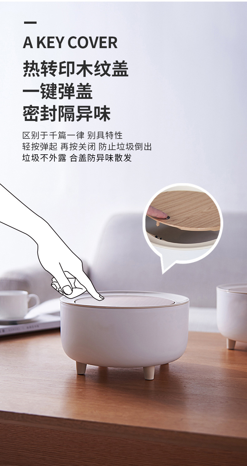desktop wood grain push trash can