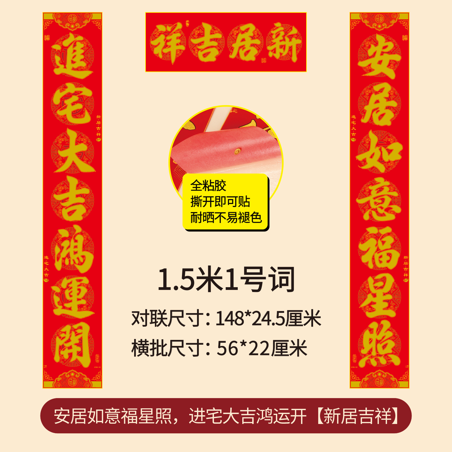 1.5m into the new house, people are prosperous, living in a fu house, young and old, safe auspicious in entering residence (real length 148 * 24cm)